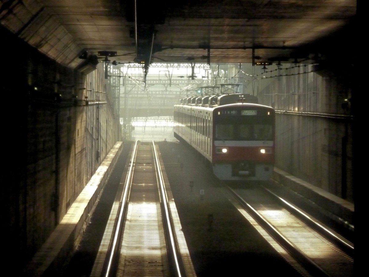 Zweiglinien des Keikyû-Konzerns - die Haneda-Linie (6,5km): Die einzige Zweiglinie auf dem Stadtgebiet von Tokyo führt zum Flughafen Haneda und wurde 1998-2004 durchgehend eröffnet. Sie ersetzt eine heruntergekommene Linie durch ein Gebiet mit Kleingewerbe; der Flughafenverkehr wurde allein vom Tokyo-Monorail bewältigt. Heute kann man von hier in rund 1 Std.30 Min. direkt zum Flughafen Tokyo-Narita gelangen. Bild: Zug 2125 (Serie 2100) an der Endstation Haneda Flughafen Inland-Terminal, 25.Oktober 2011.