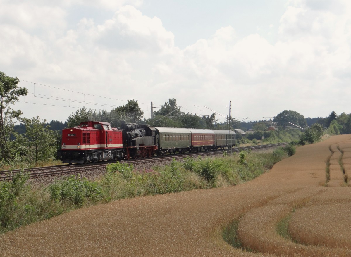 Am 24.07.14 gab es eine Überführung der Dampflok 75 501 von Schwarzenberg nach Neuenmarkt-Wirsberg. Hier die Fuhre mit 112 565 hier die Durchfahrt in Mehltheuer/V.