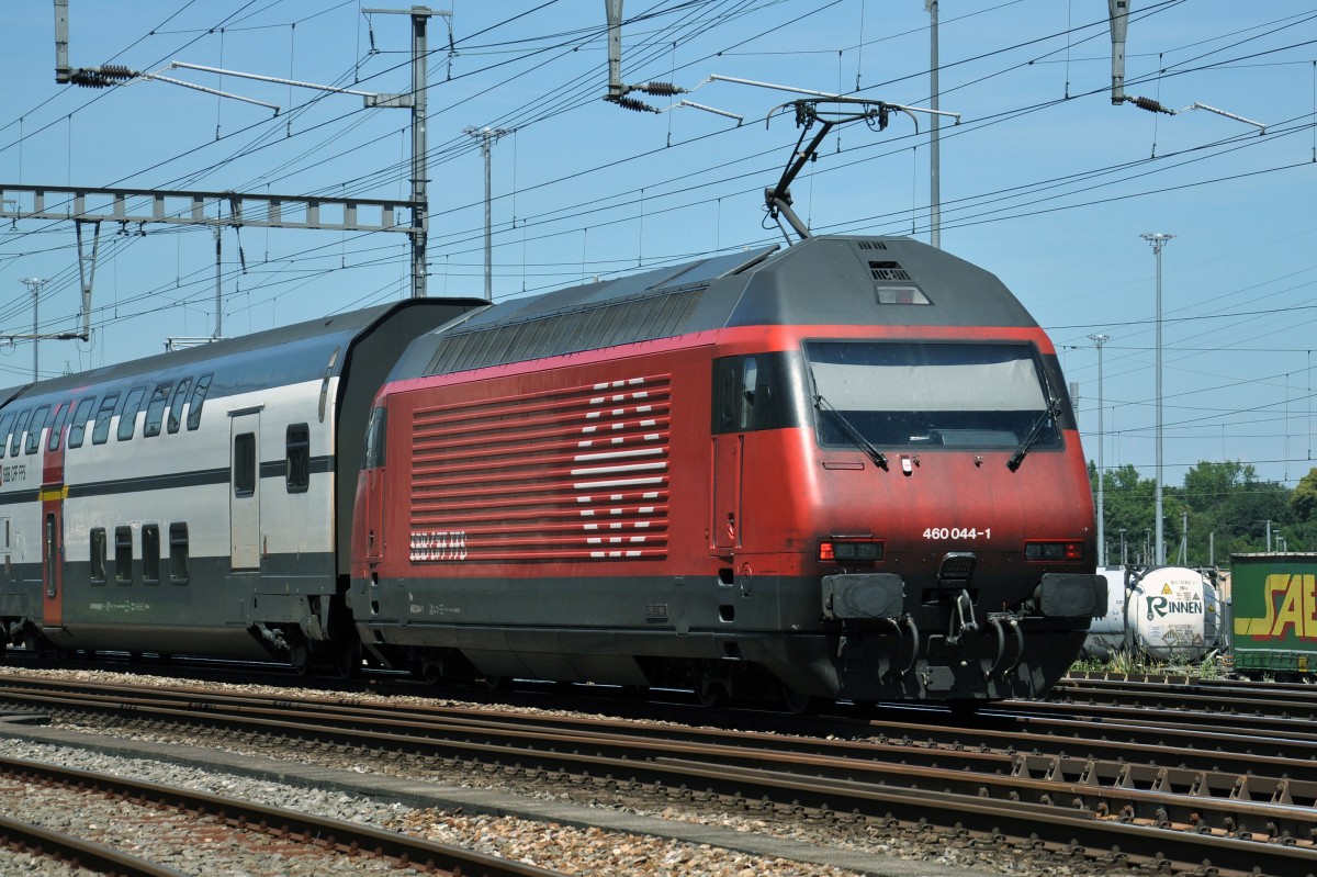 Re 460 044-1 durchfährt den Bahnhof Muttenz. Die Aufnahme stammt vom 03.07.2014.