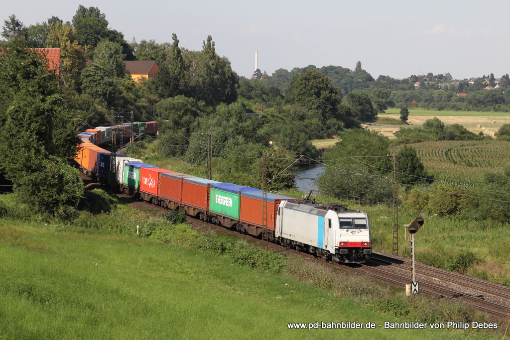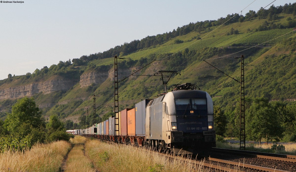 185 638-4 mit einen Containerzug hinter Thüngersheim am 16.07.14