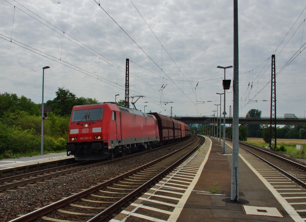 185 393-6 mit einen leeren Kohlezug in Retzbach-Zellingen am 16.07.14.