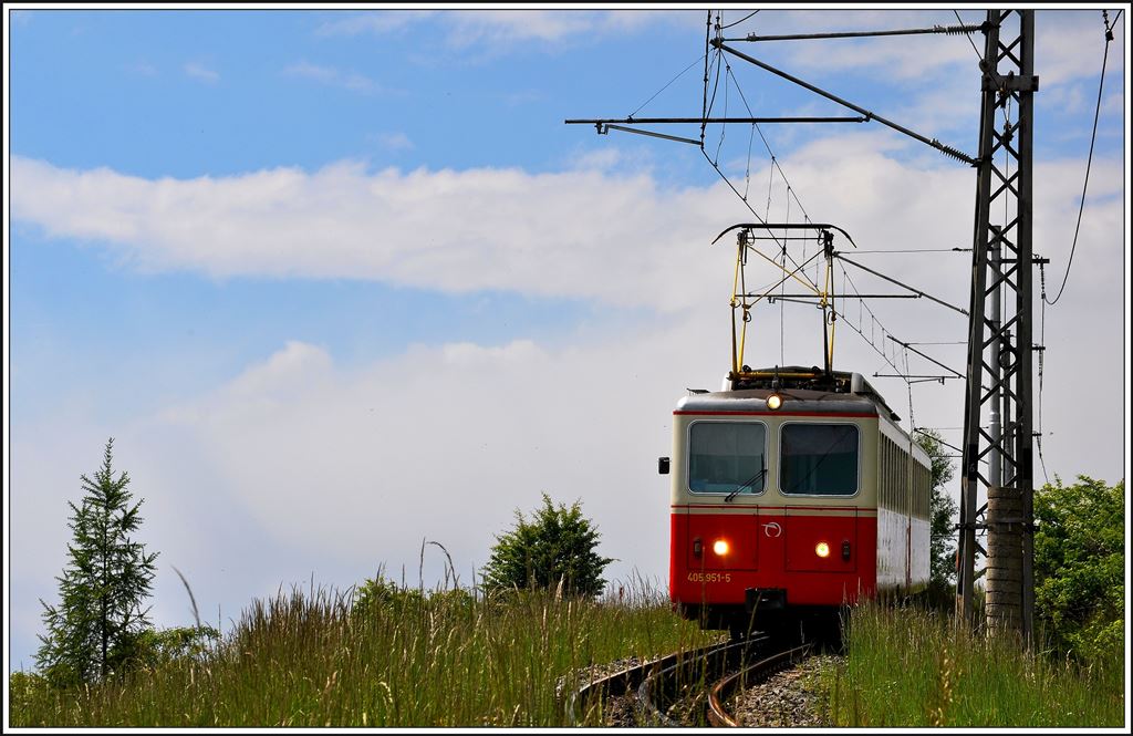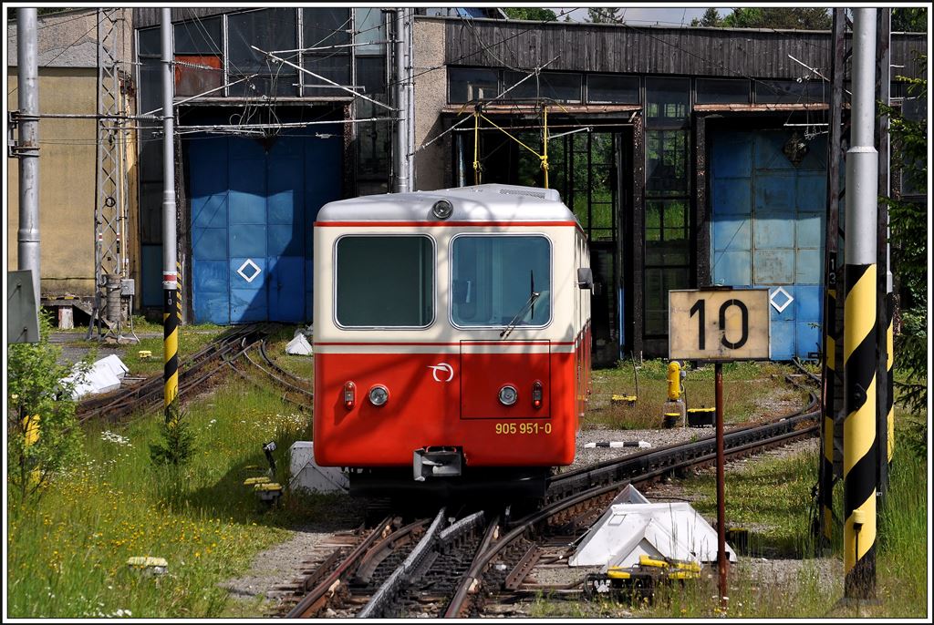 905 951-0 bei der Einfahrt in die Bahnhofhalle von Štrba. (05.06.2014)