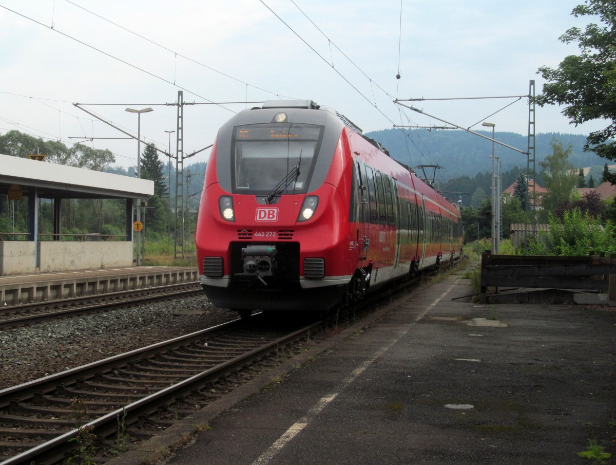 442 272-1 / 442 772-0 durchfährt am 27. Juli 2014 als Regionalbahn von Saalfeld nach Bamberg den Bahnhpf Pressig-Rothenkirchen über Gleis 1.