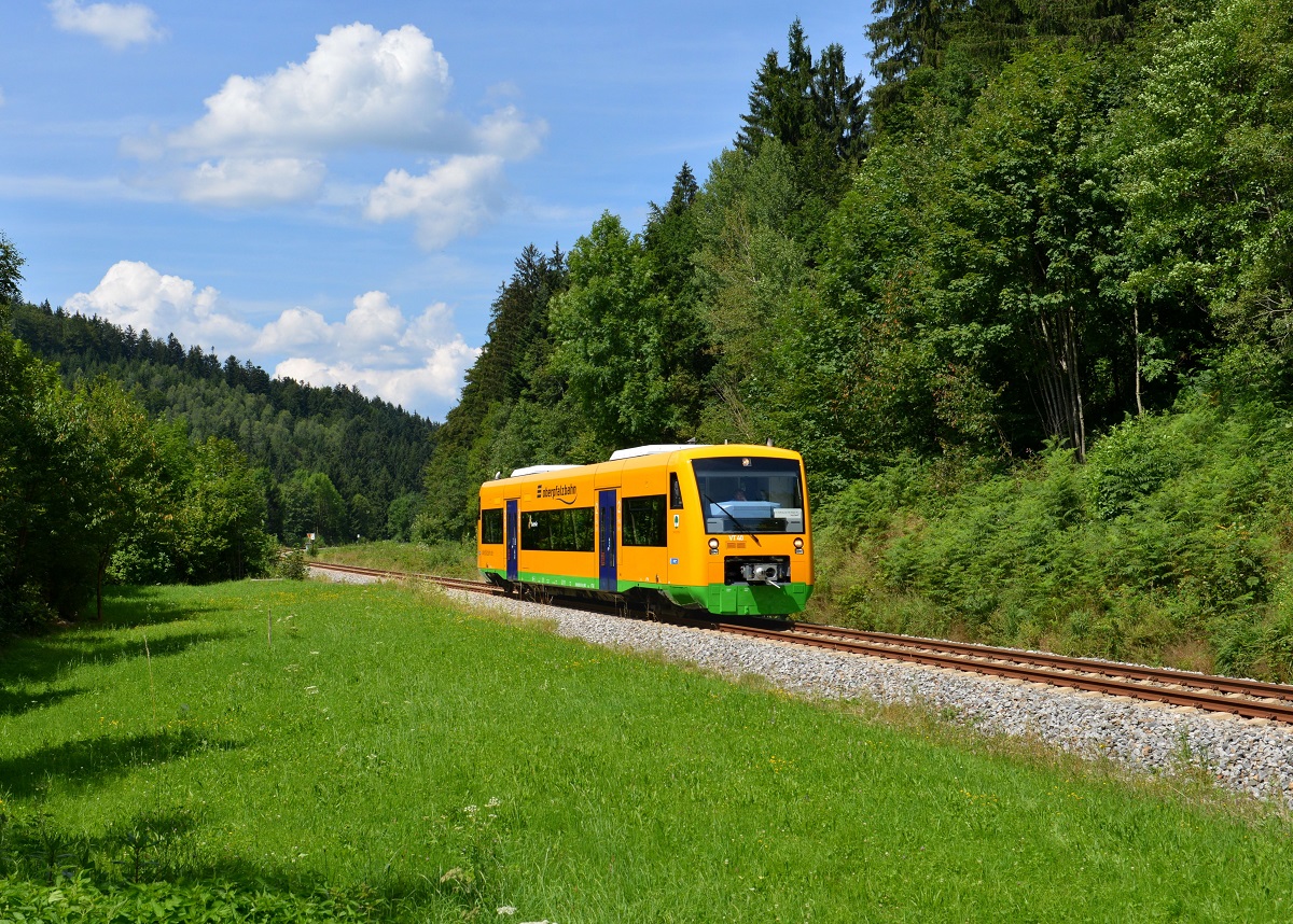 650 673 (VT 40) bei einer Überführungsfahrt von Viechtach nach Schwandorf am 26.07.2014 bei Gotteszell.