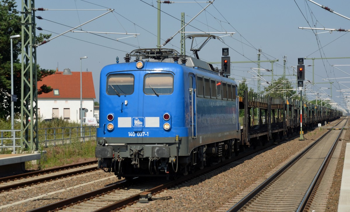 Am 10.07.14 rollte 140 037 mit einem leeren Autozug durch Rodleben Richtung Dessau.
