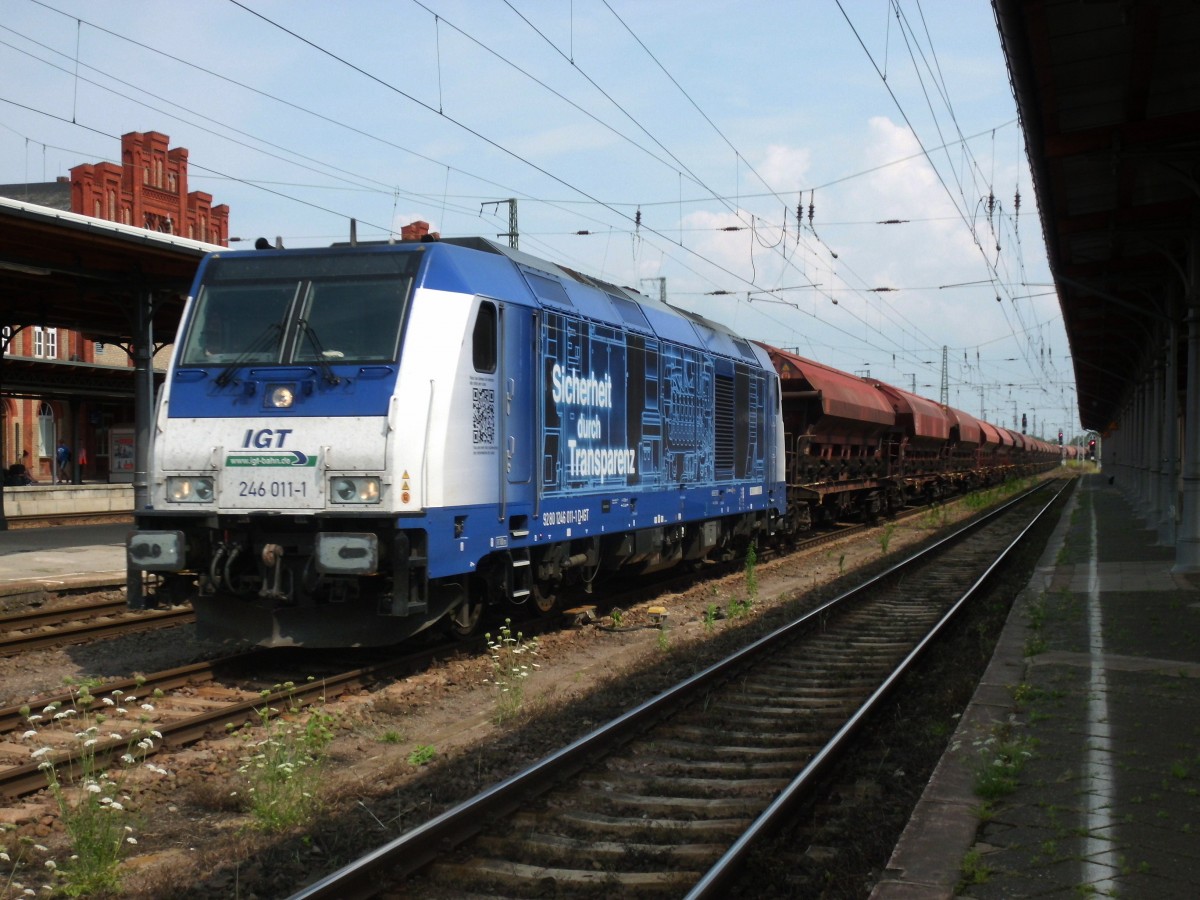 Am 27.07.2014 kam 246 011 mit einem Düngerzug aus Richtung Magdeburg nach Stendal und fuhr weiter in Richtung Wittenberge.