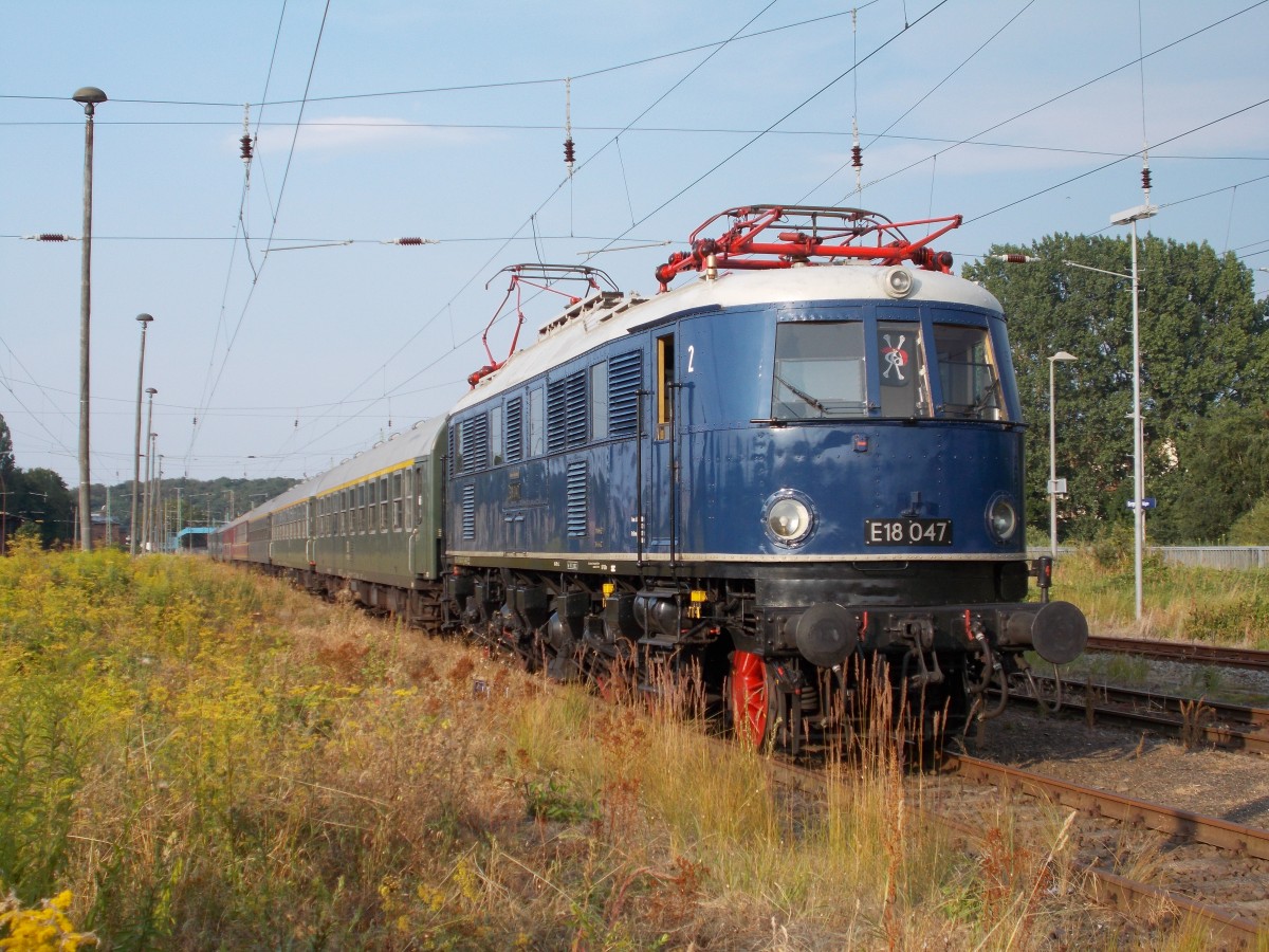 E18 047 mit dem Piratenexpress von und nach Ilmenau,am 26.Juli 2014,in Bergen/Rügen.