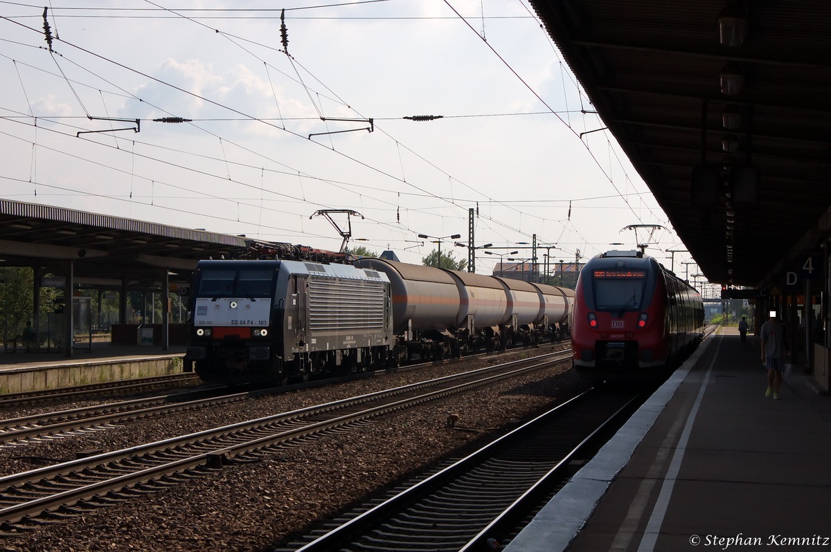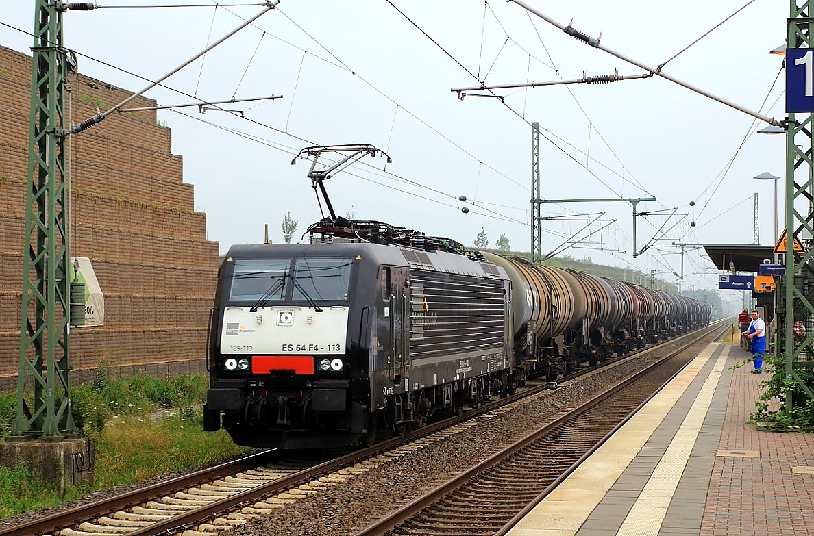 ES 64 F4 - 113 alias 189-113 der MRCE durchfährt am 26.07.2014 mit einem Kesselwagenzug den S-Bahn-Haltepunkt Neuss-Allerheiligen