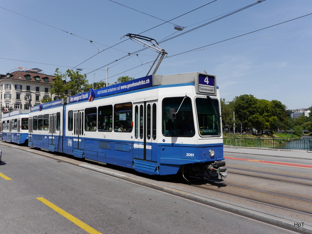VBZ - Tram Be 4/6 2061 unterwegs auf der Linie 4in der Stadt Zürich am 19.07.2014