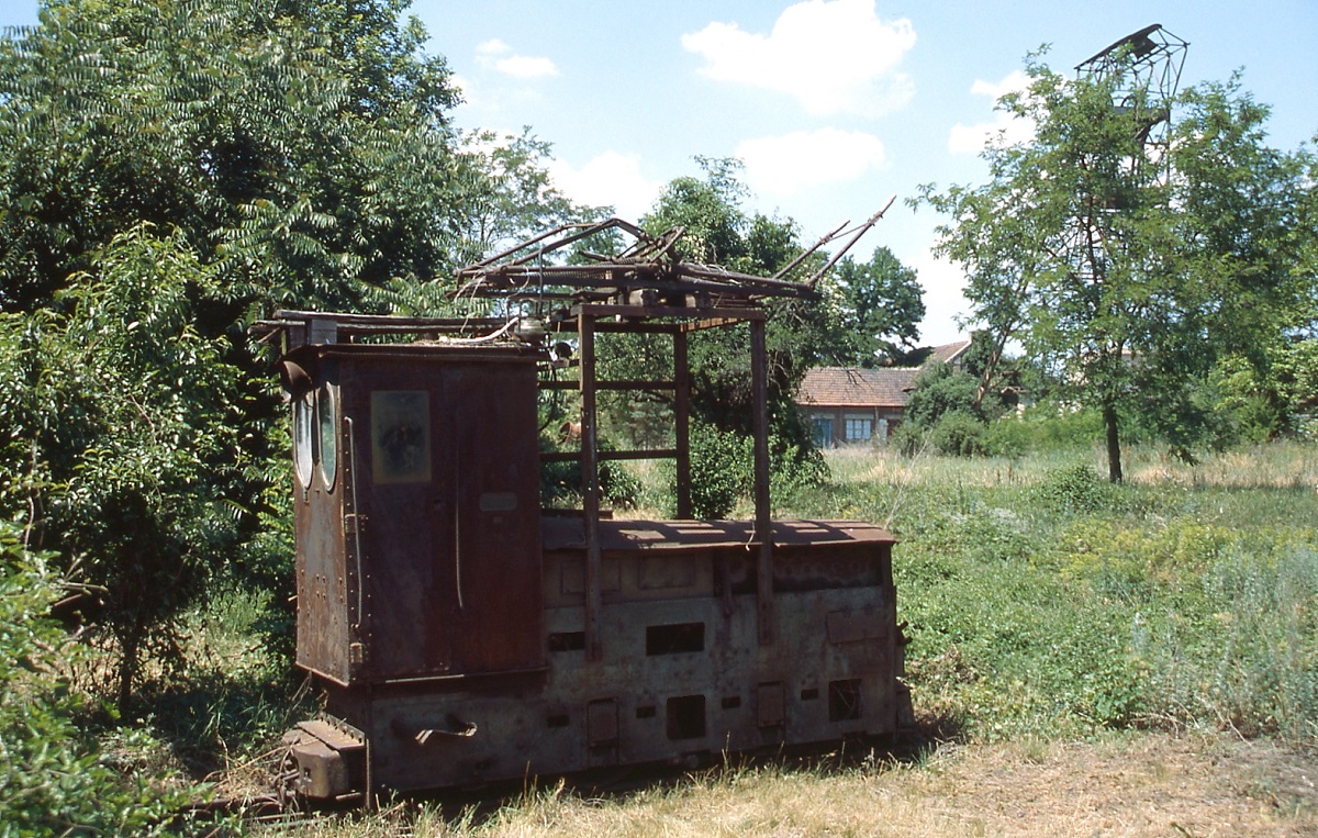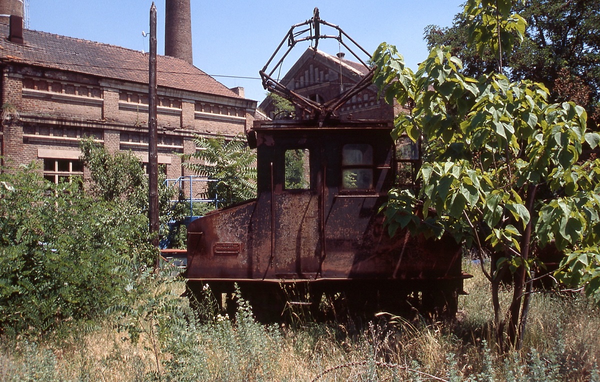 Überall auf dem Gelände des stillgelegten Kohlebergwerks Aleksinac erinnern Reste wie diese 760 mm-E-Lok an den früheren Bergbaubetrieb (Juni 2000)