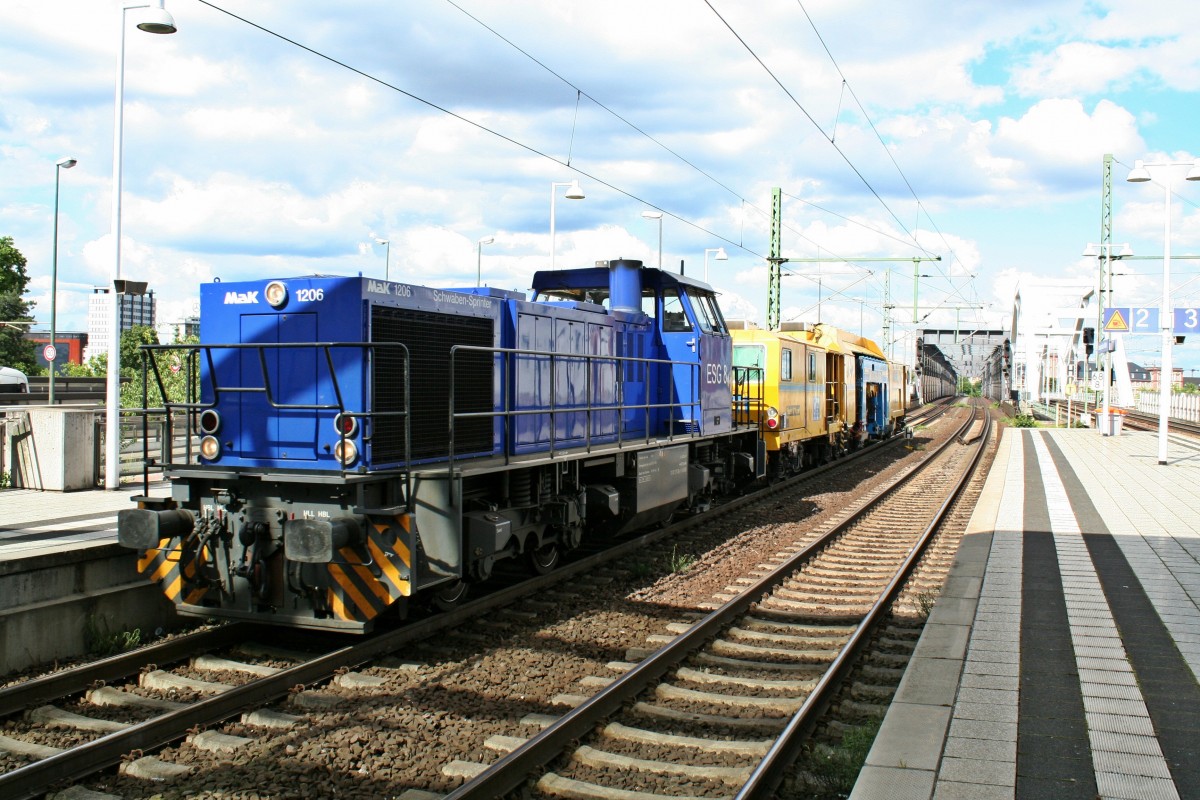 Nachschuss auf 275 009-9, die mit einer Stopfmaschine auf dem Weg in Richtung Mainz am Nachmittag des 24.05.14 den Bahnhof Ludiwgshafen (Rhein) Mitte durchfuhr.