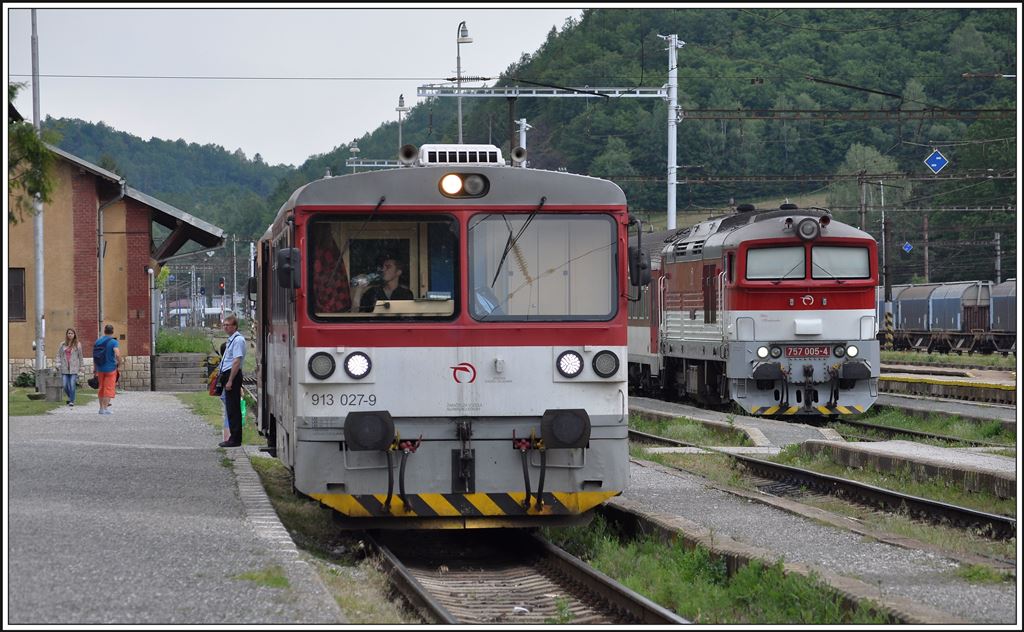 913 027-9/813 027-4 wartet in Margecany als Regio7746 nach Nálepkovo auf Anschlussreisende. (06.06.2014)