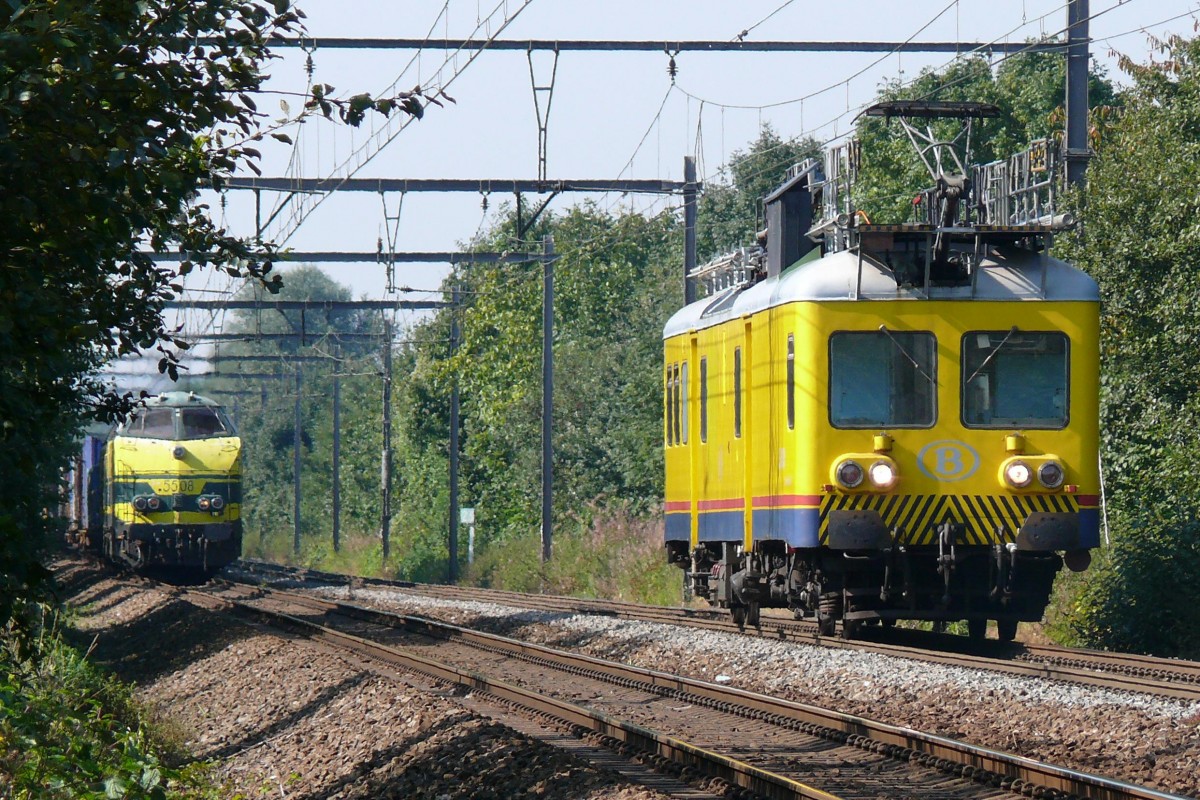 Während der NRW Express aud das Abfahrtssignal wartet,legt sich der ICE 3 aus Brüssel elegant in den Gleisbogen.