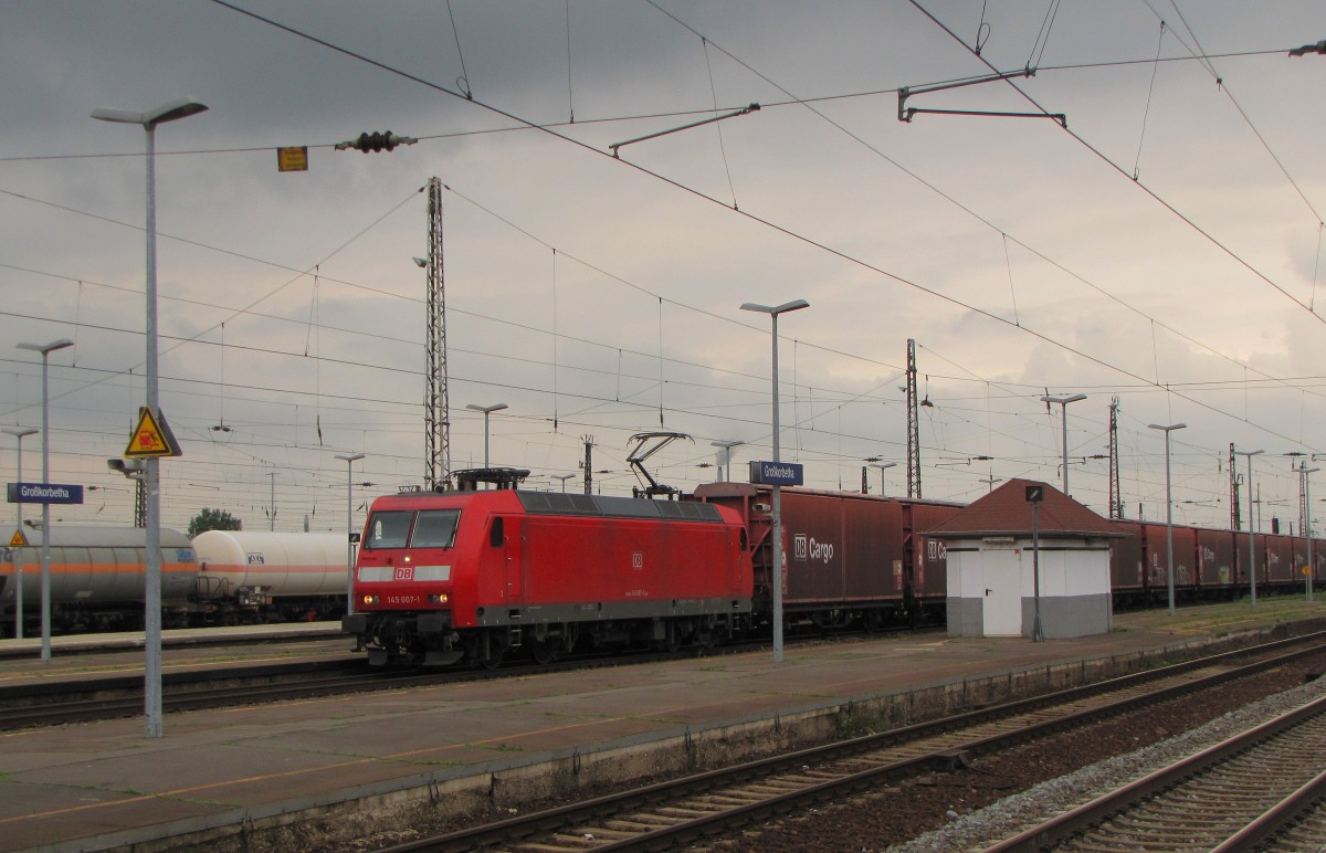 DB 145 007-1 mit einem Autologistikzug Richtung Naumburg (S), am 30.07.2014 in Großkorbetha.
