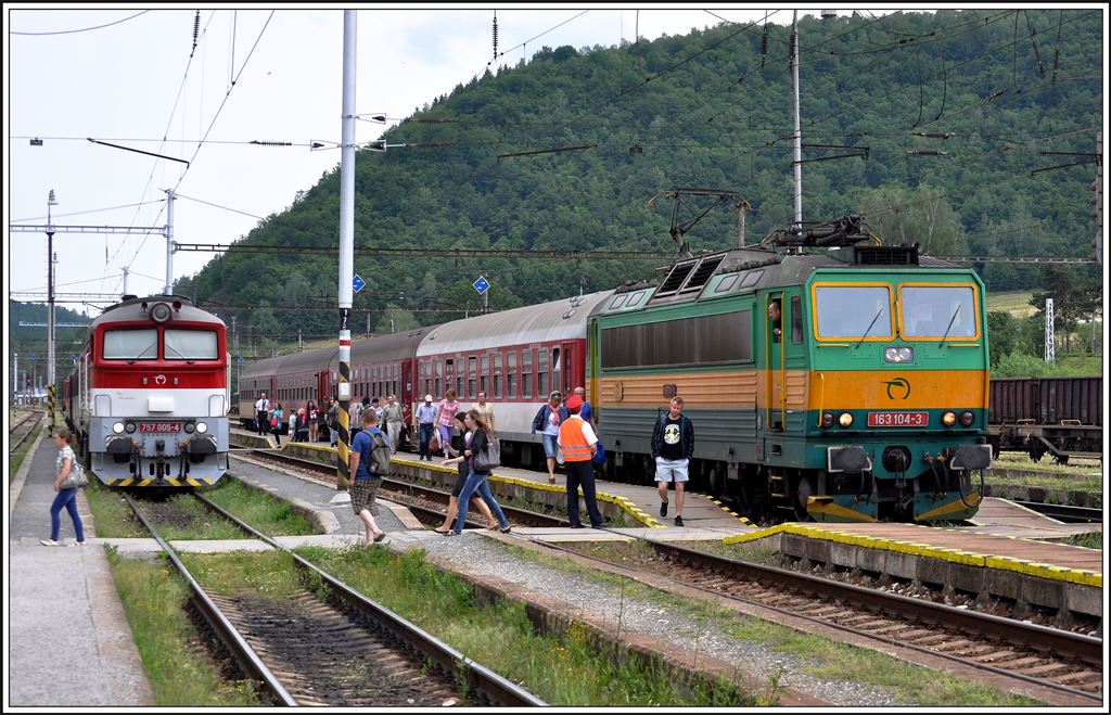 Der Regio7815 mit 163 104-3 bringt viele Anschlussreisende nach Margecany. (06.06.2014)