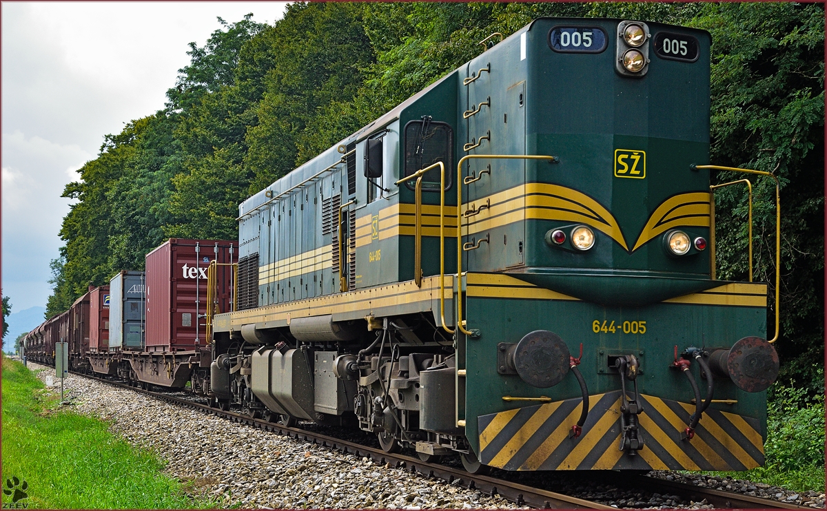 SŽ 644-005 zieht Güterzug durch Maribor-Studenci Richtung Tezno Verschiebebahnhof. /31.7.2014