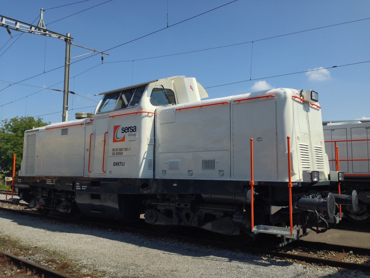 Sersa Lok  Gretli  (ehemals  Gretli 2 ) AM 847951-1 in Weinfelden vor dem Sersa TUZ nach Revision und Neu-Lackierung am 31.07.2014