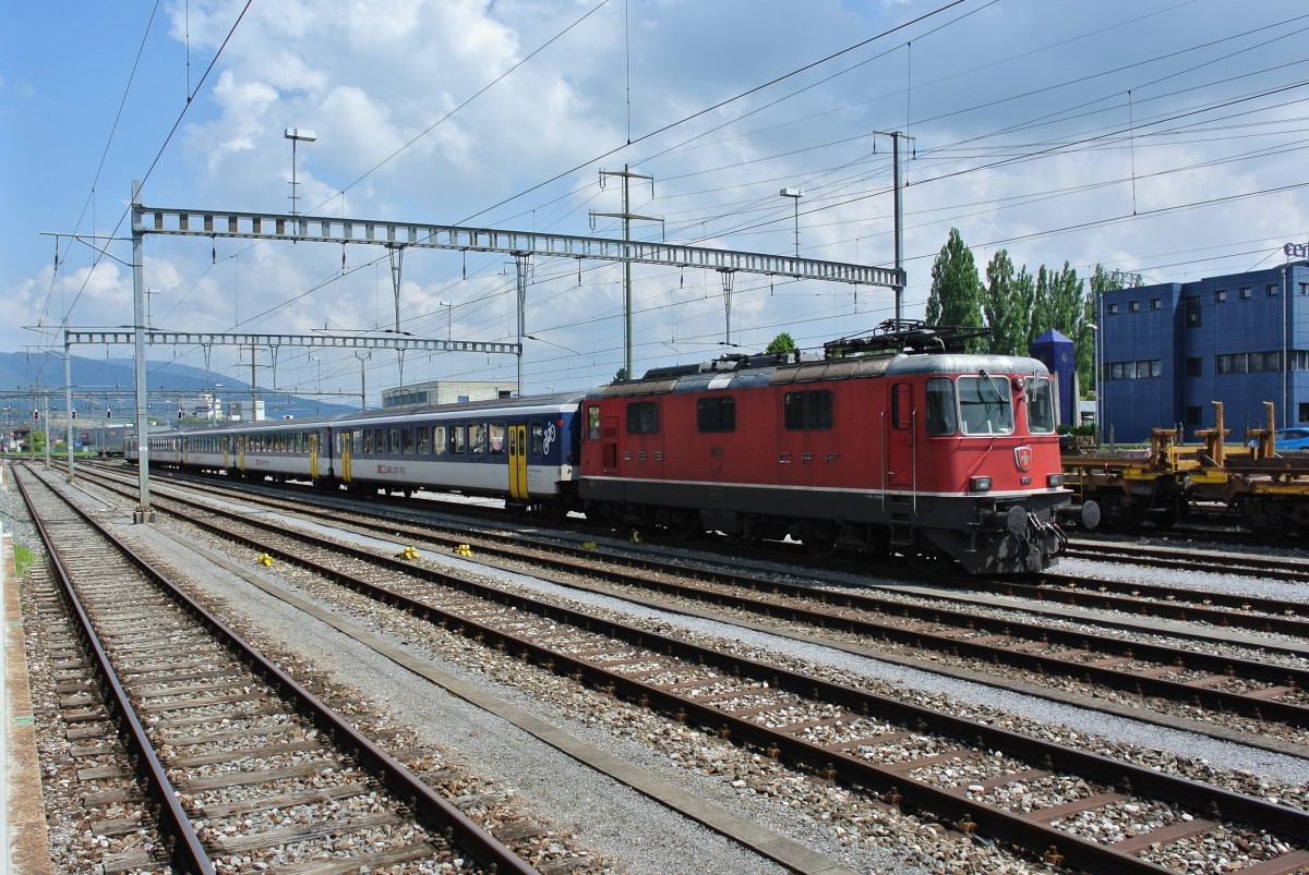 Äusserst selten verkehrt ein EWII Pendel durch Moutier. Heute verkehrte jedoch der Reservependel von Olten via Biel-Moutier-Delémont nach Bure, und wieder zurück. Der Pendel holte in Bure Soldaten ab, welche heute die Rekrutenschule abgeschlossen haben. Im Bild ist die Re 4/4 II 11118 mit ihrem EWI/II Pendel und der Re 4/4 II 11132 (am Schluss) bei Durchfahrt in Moutier, 31.07.2014.