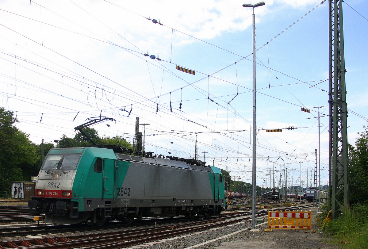 Die Cobra 2842 rangiert in Aachen-West bei Sonne und Wolken am Nachmittag vom 22.6.2014.