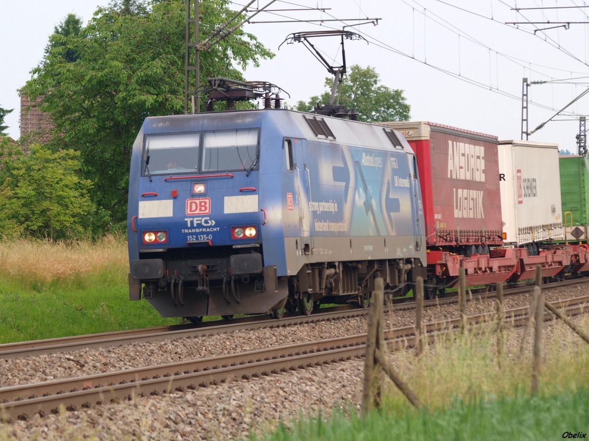 Die 185 637 mit einem Autozug am 06.06.2014 unterwegs bei Laaber.