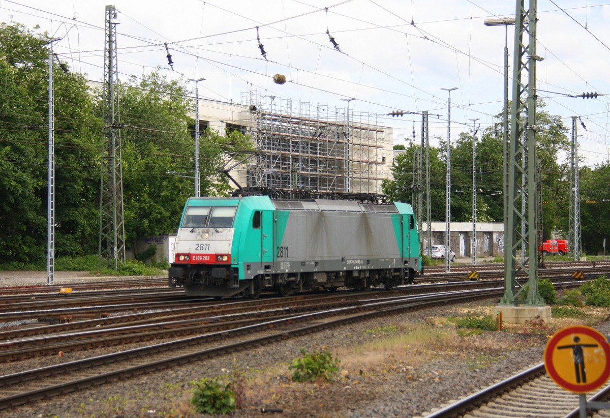 Die Cobra 2811 rangiert in Aachen-West. Aufgenommen vom Bahnsteig in Aachen-West bei Sonne und Wolken am Nachmittag vom 25.5.2014.