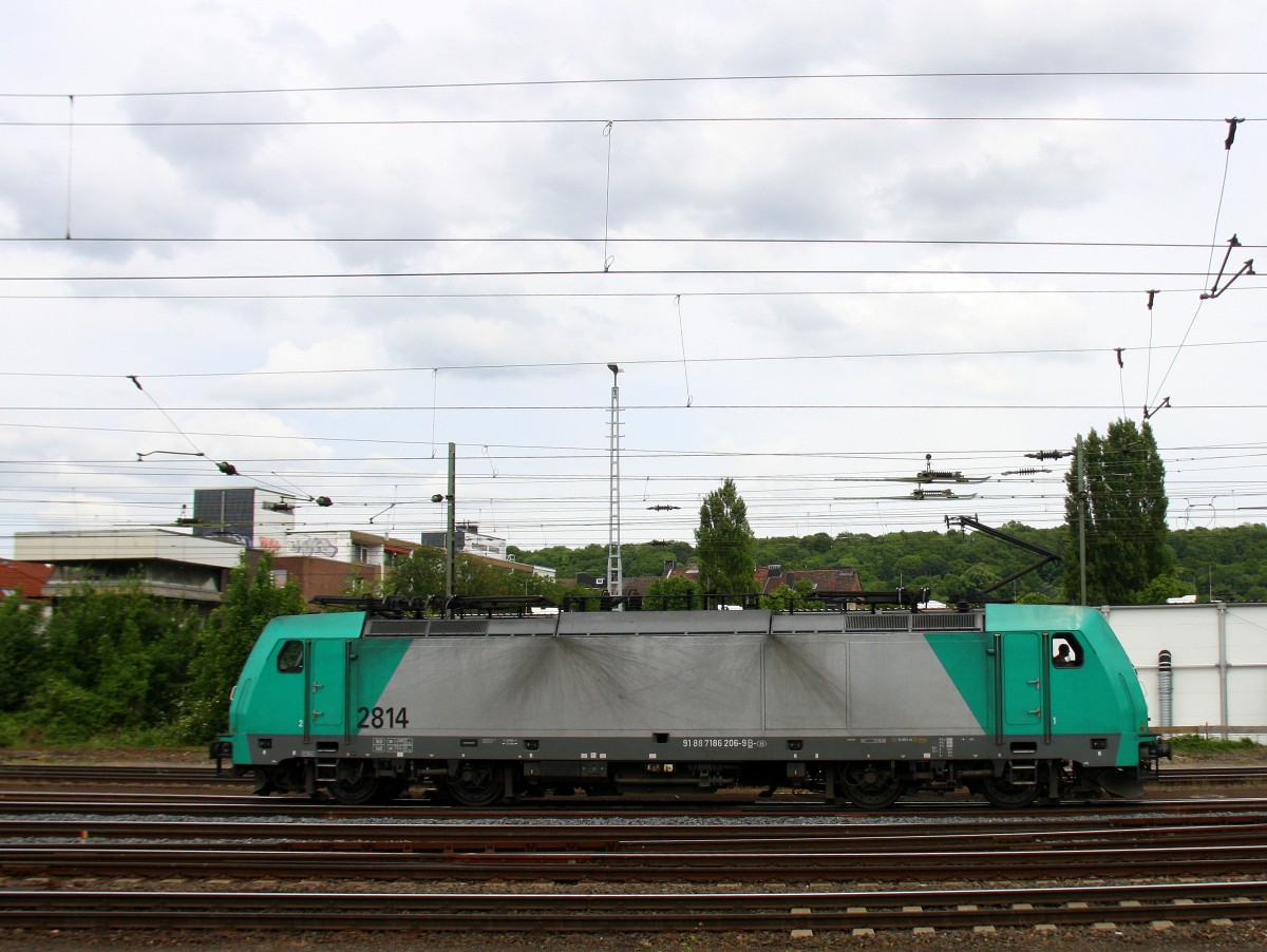 Die Cobra 2814 rangiert in Aachen-West. Aufgenommen vom Bahnsteig in Aachen-West bei Sonne und Wolken am Nachmittag vom 25.5.2014.