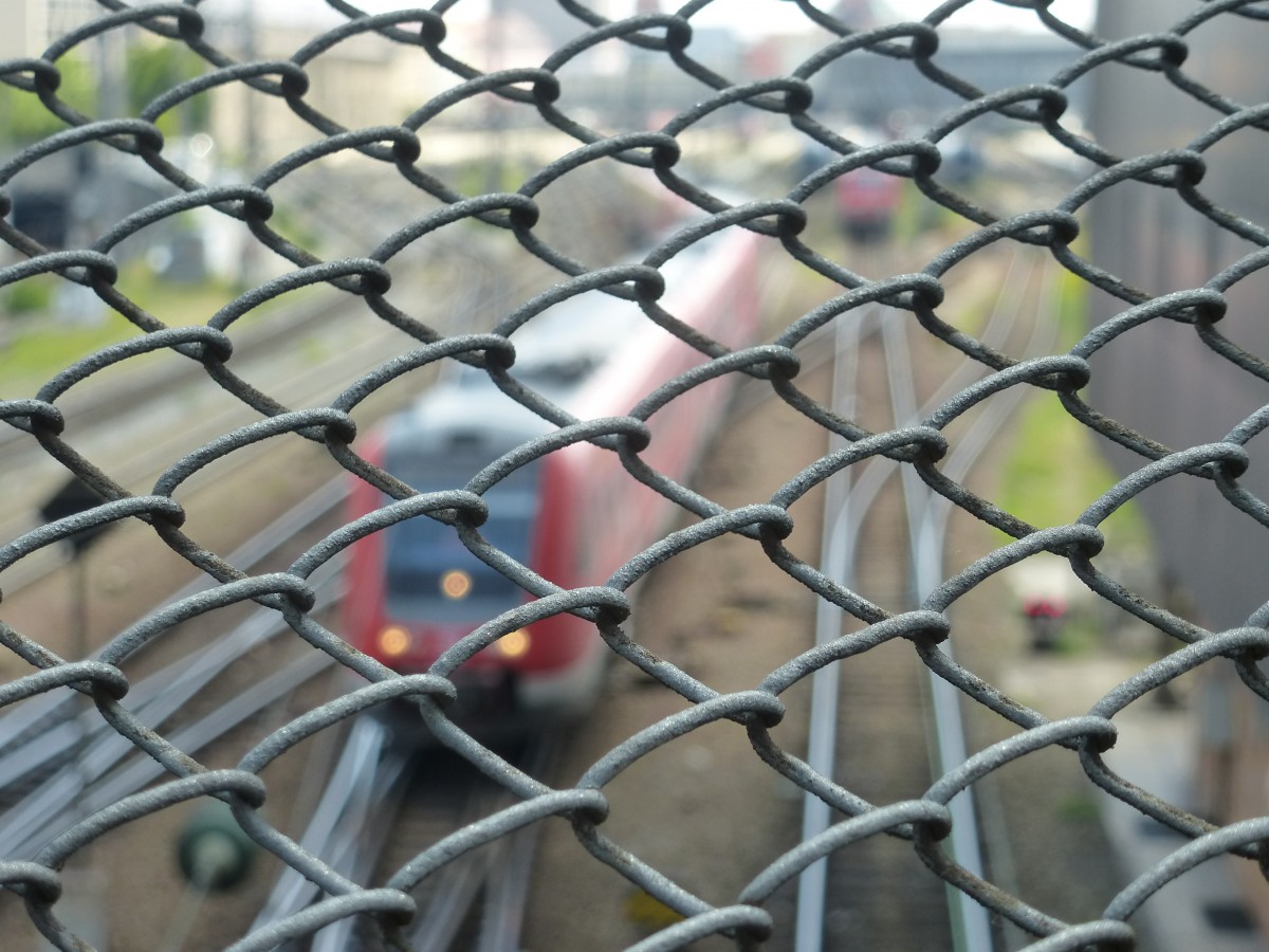 Perspektive nach unten - Wenn man von der Hackerbrücke aus nach unten blickt, dann sieht man Zäune. Dadurch ergibt sich dieses Foto, auf dem Gerade ein 612er aus dem Gleisvorfeld des Münchner Hauptbahnhofs ausfährt.