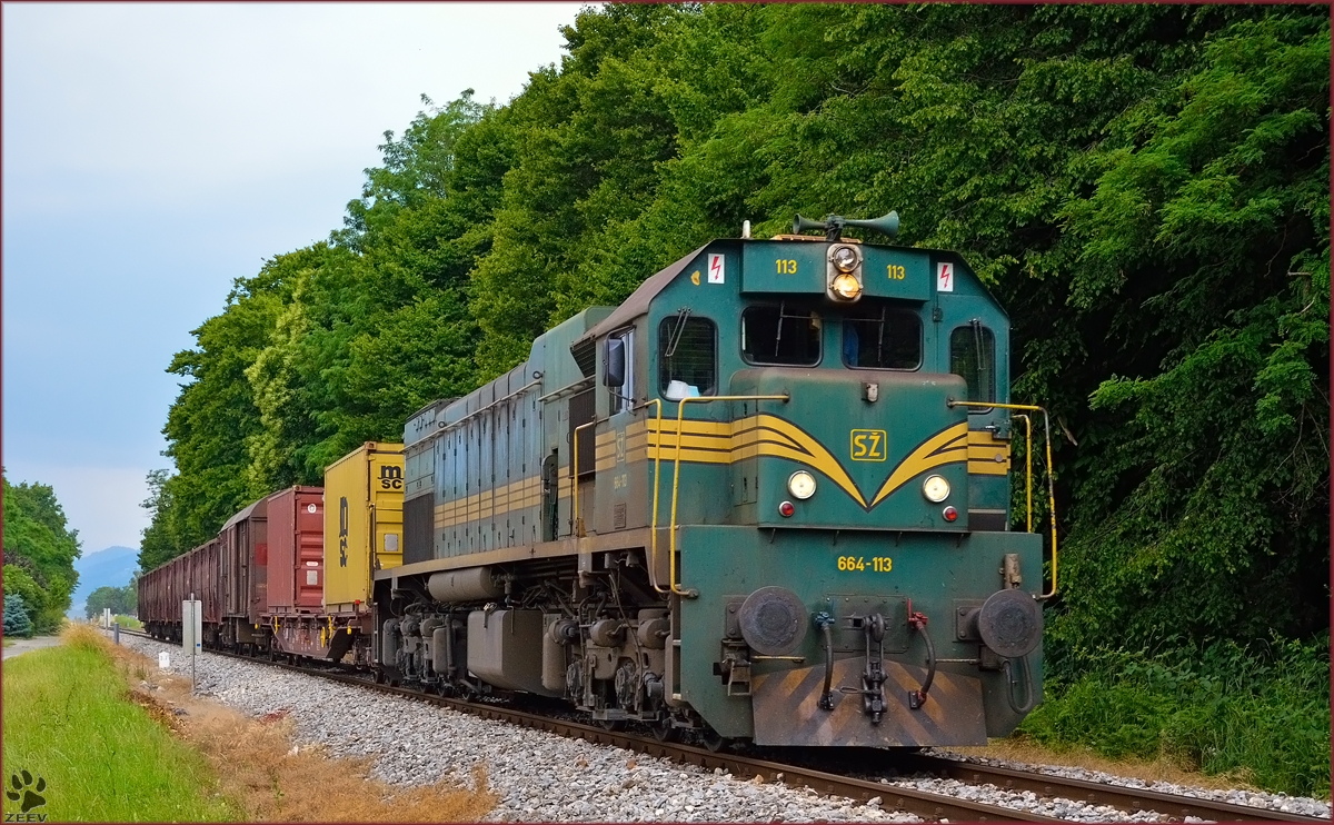 SŽ 664-113 zieht Güterzug durch Maribor-Studenci Richtung Tezno Verschiebebahnhof. /12.6.2014