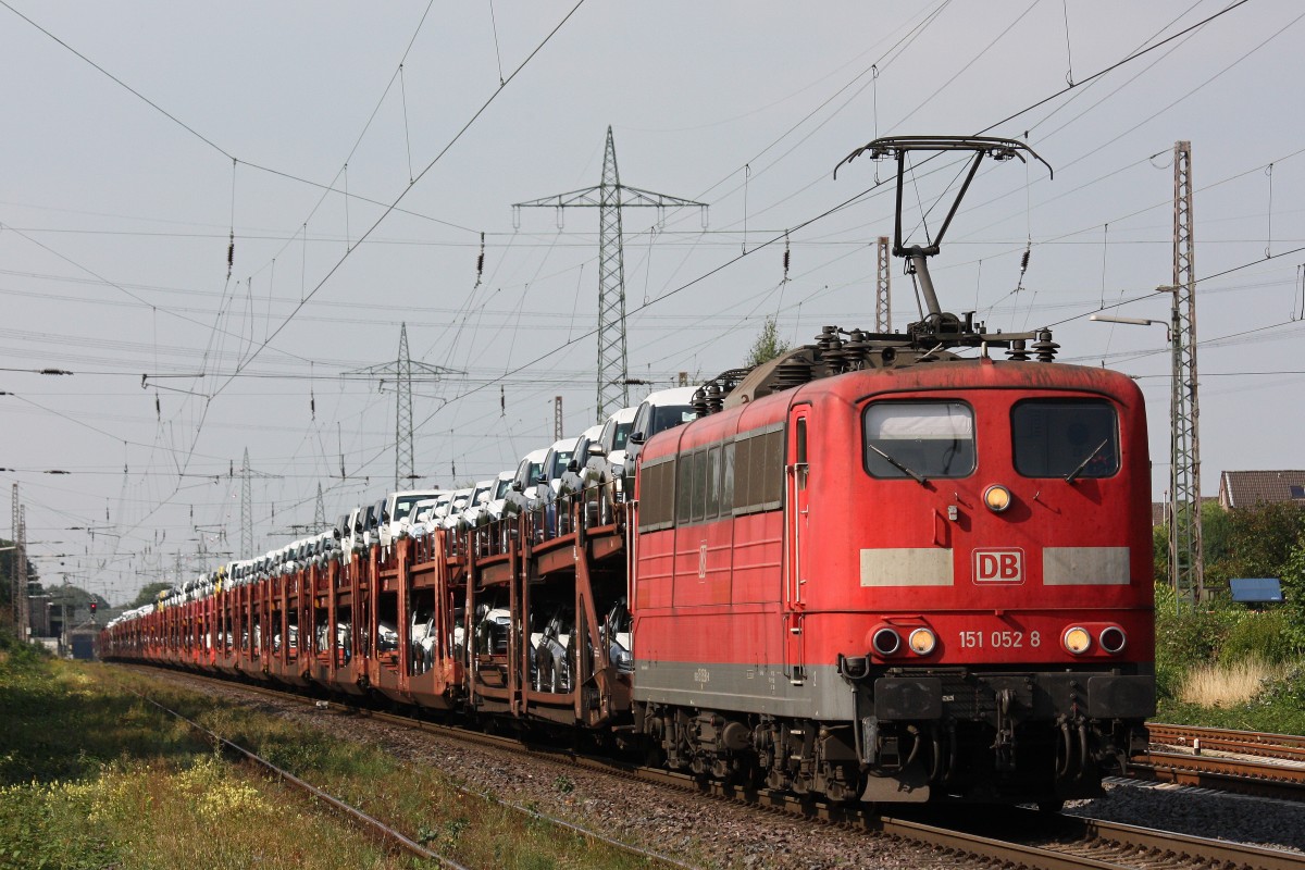 151 052 am 23.8.13 mit einem Autozug in Ratingen-Lintorf.