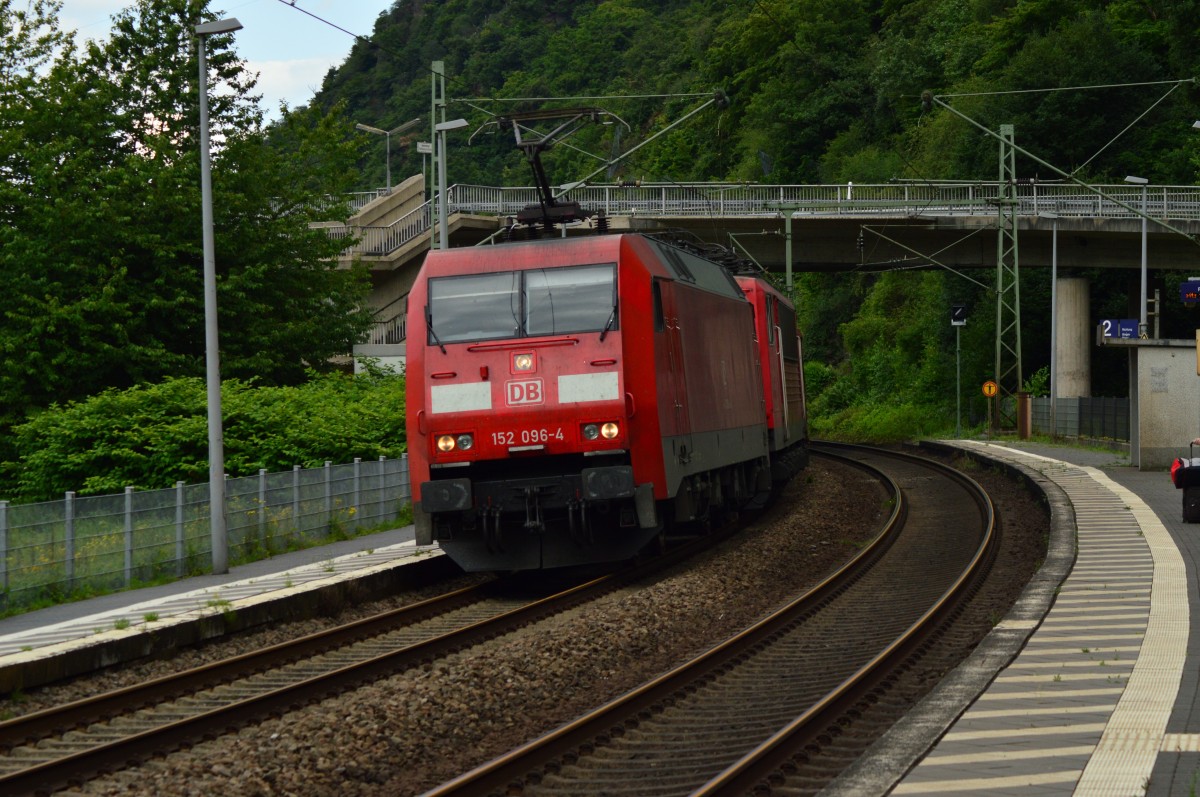 152 096-4 mit einem 155ziger und einigen Güterwagen im Schlepp durch Hirzenach.