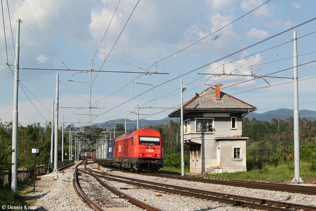 2016 083 mit einem Containerzug am 07.06.2014 in Prestranek.