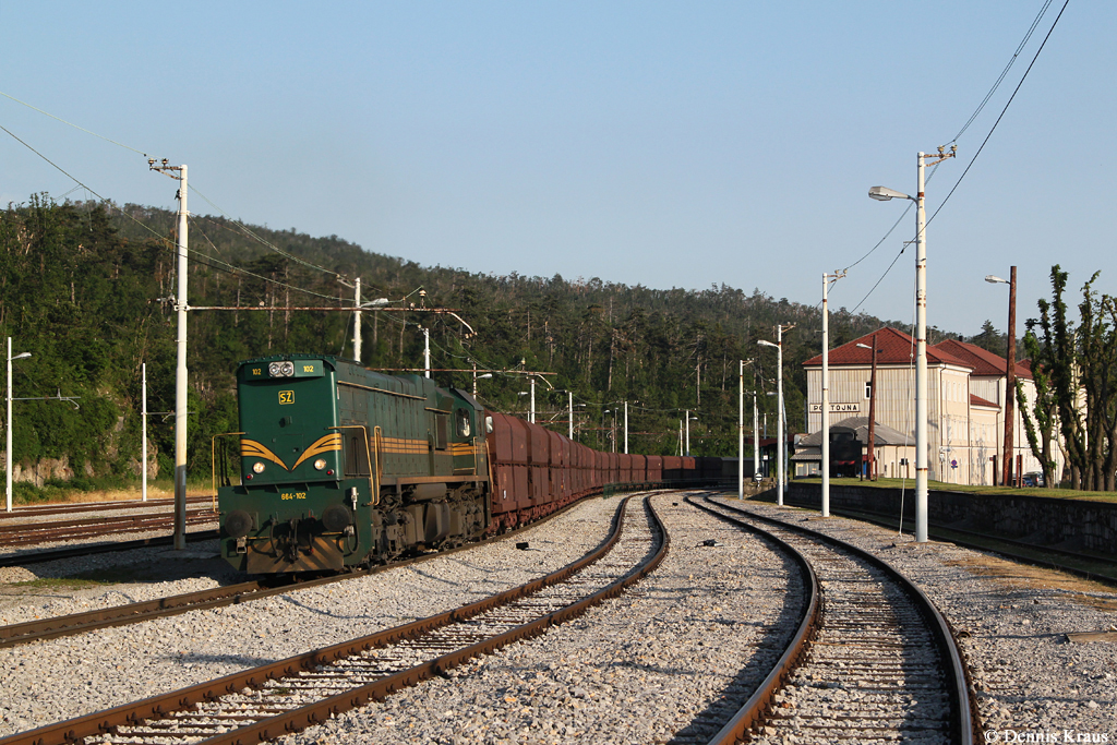 664 102 mit einem Erzzug am 07.06.2014 in Postojna.