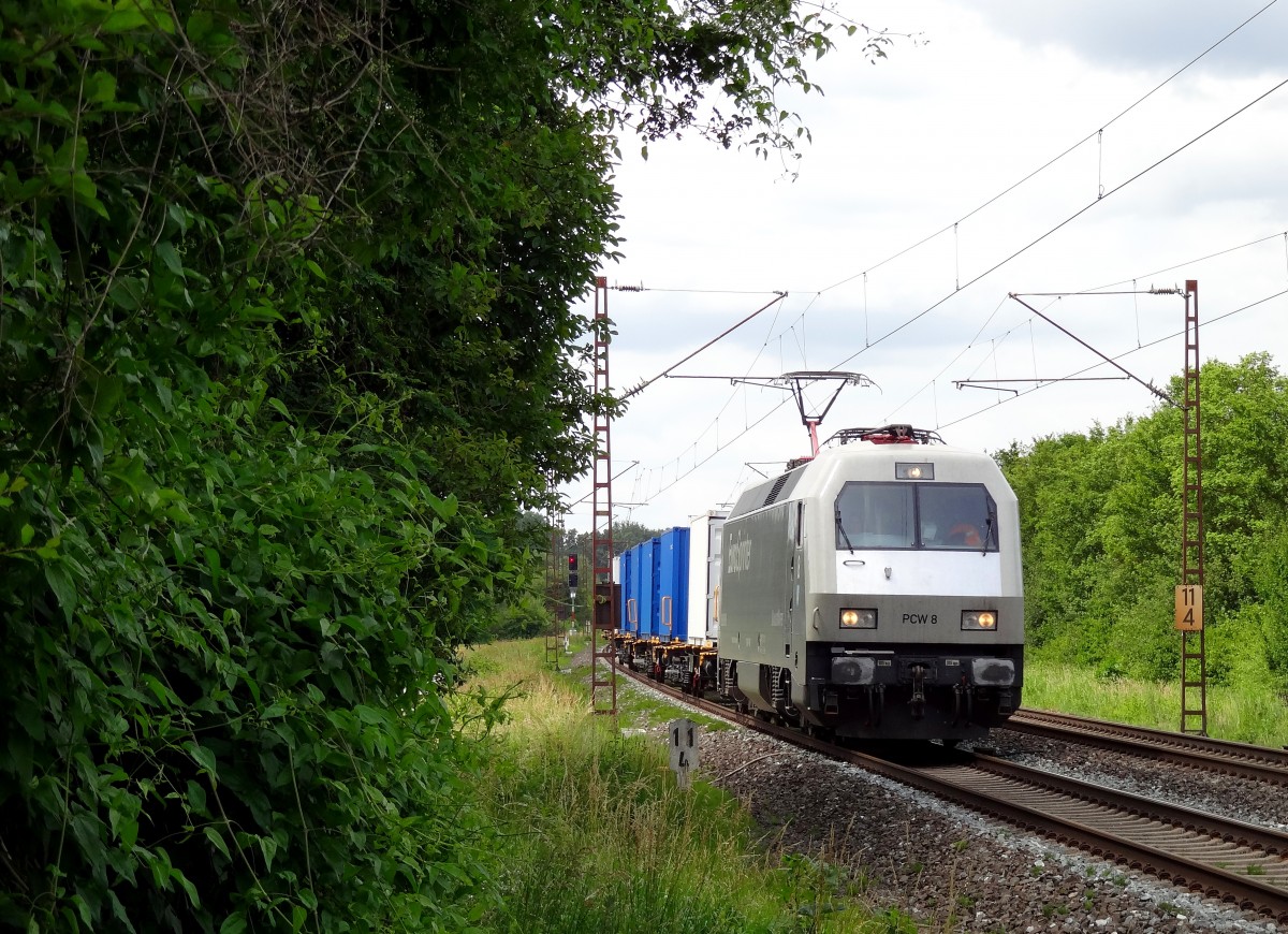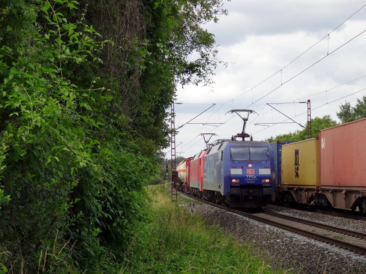 Ein Vectron von Boxxepres - naja, das war er zumindest mal. Er scheint heute etwas kahl, im Vergleich zum letzten Mal, als er im Maintal war.