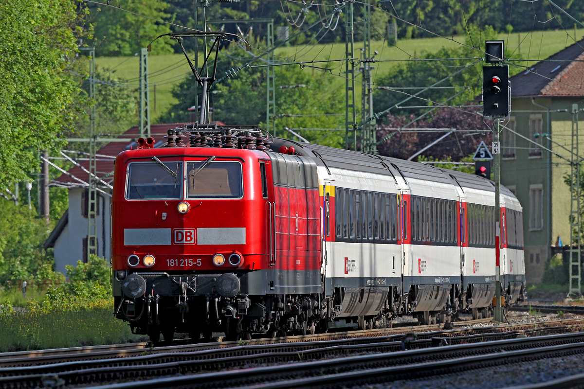 Die 181 215-5 zieht über Hattingen den IC Zürich HB-Stuttgart Hbf nach Norden am 5.6.2014