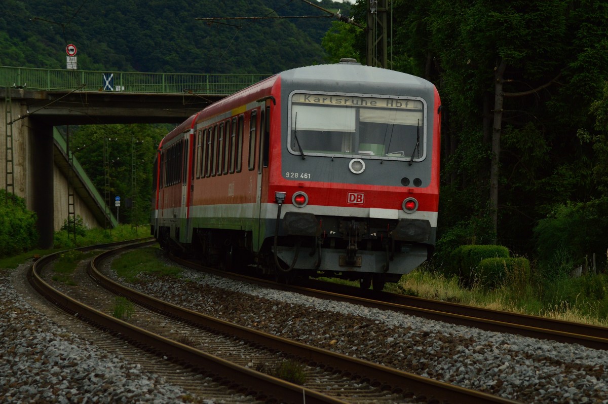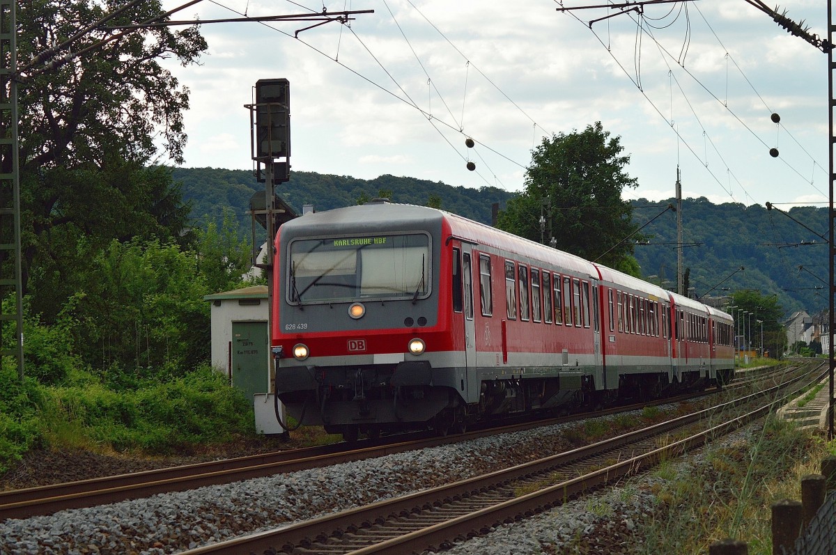 Nachschuß auf den 928 461 der hinter dem 628 439 nach Karlsruhe auf der Kbs 470 gen Hirzenach Bad Salzig passiert hat. 15.6.2014