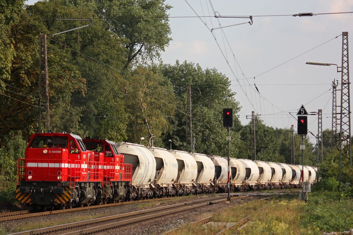 HGK DH 717+HGK DH 715 am 23.8.13 mit einem Kalkmehlzug in Ratingen-Lintorf.