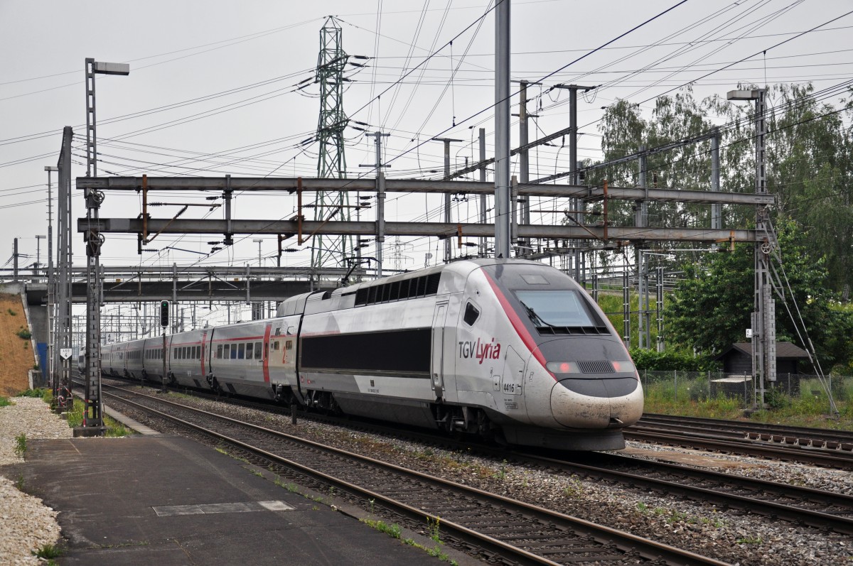 TGV Lyria 4416 durchfährt den Bahnhof Muttenz. Die Aufnahme stammt vom 06.06.2014.