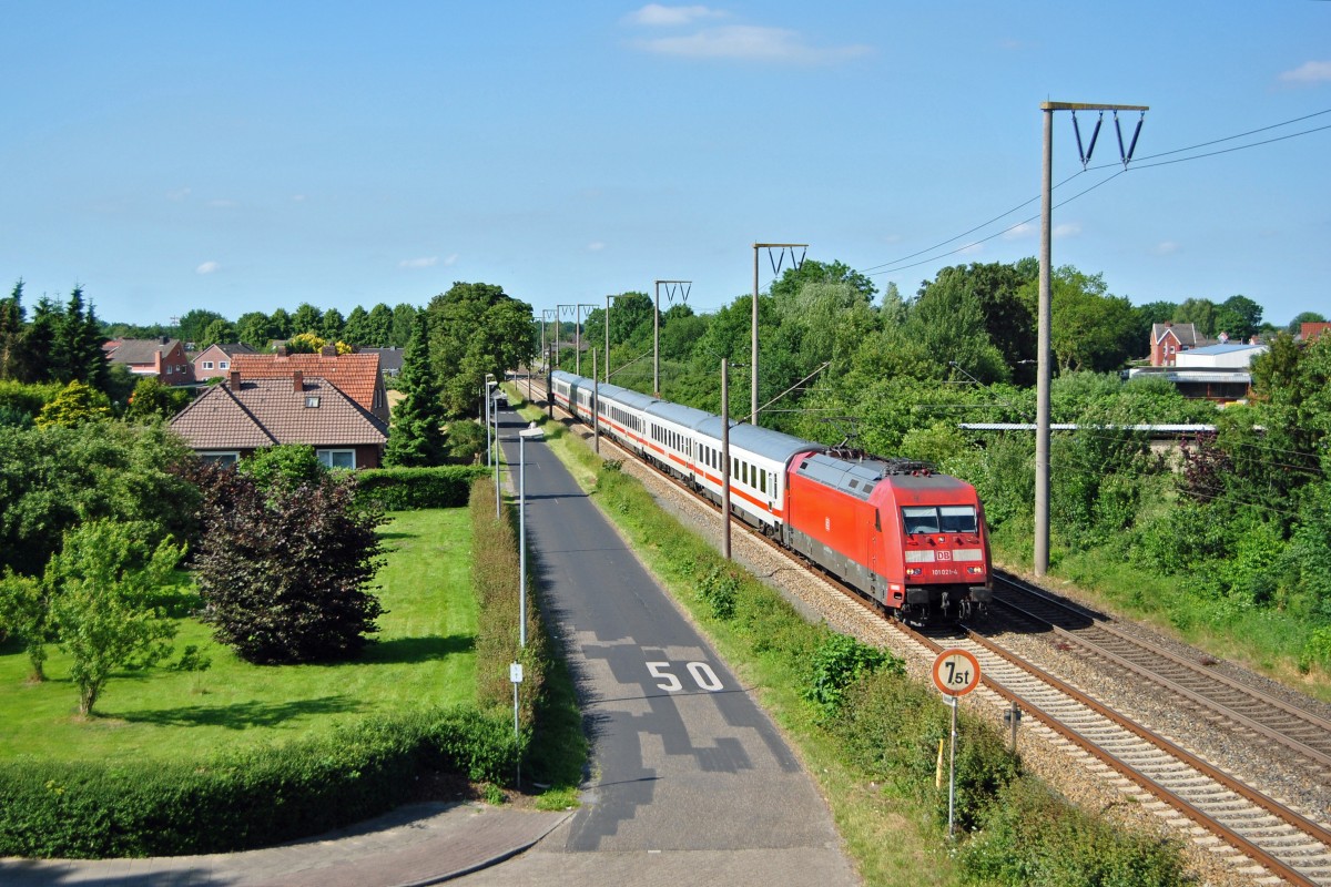 218 376-2 und 218 345-2 mit dem IC 2193 (Westerland(Sylt)-Göttingen) bei Klanxbüll 29.5.14