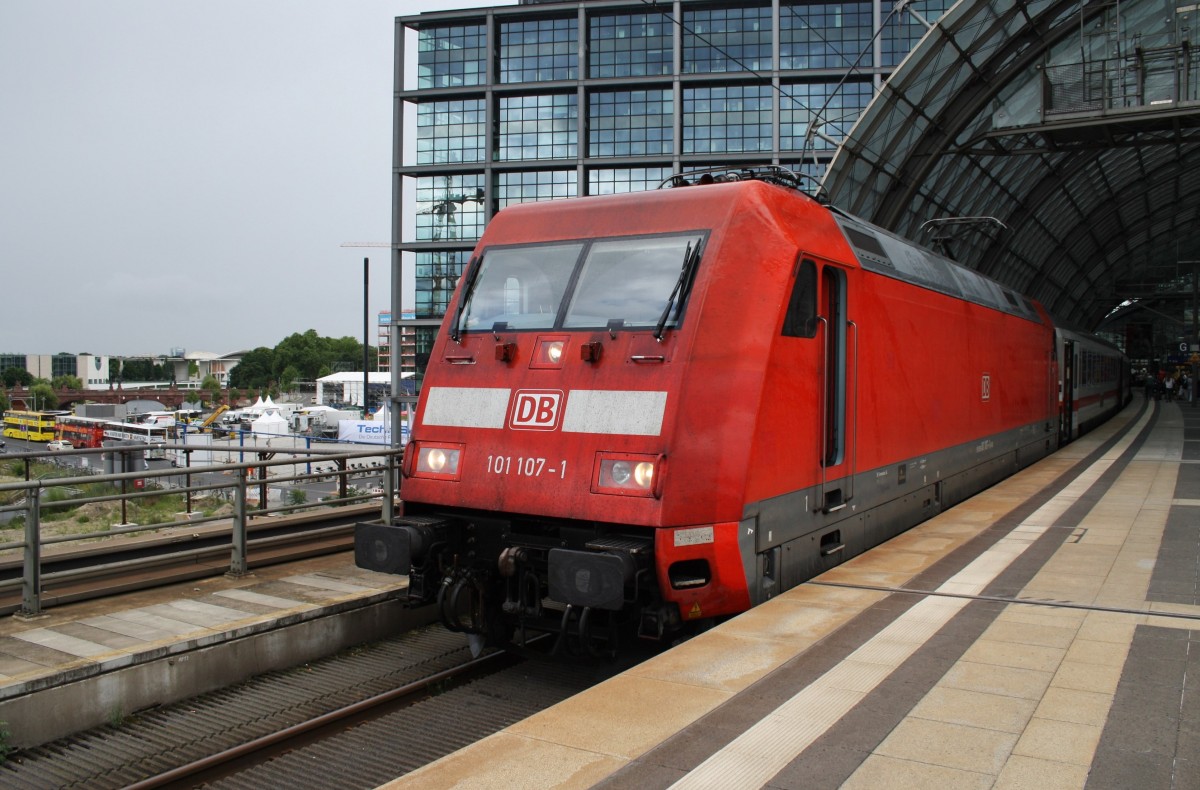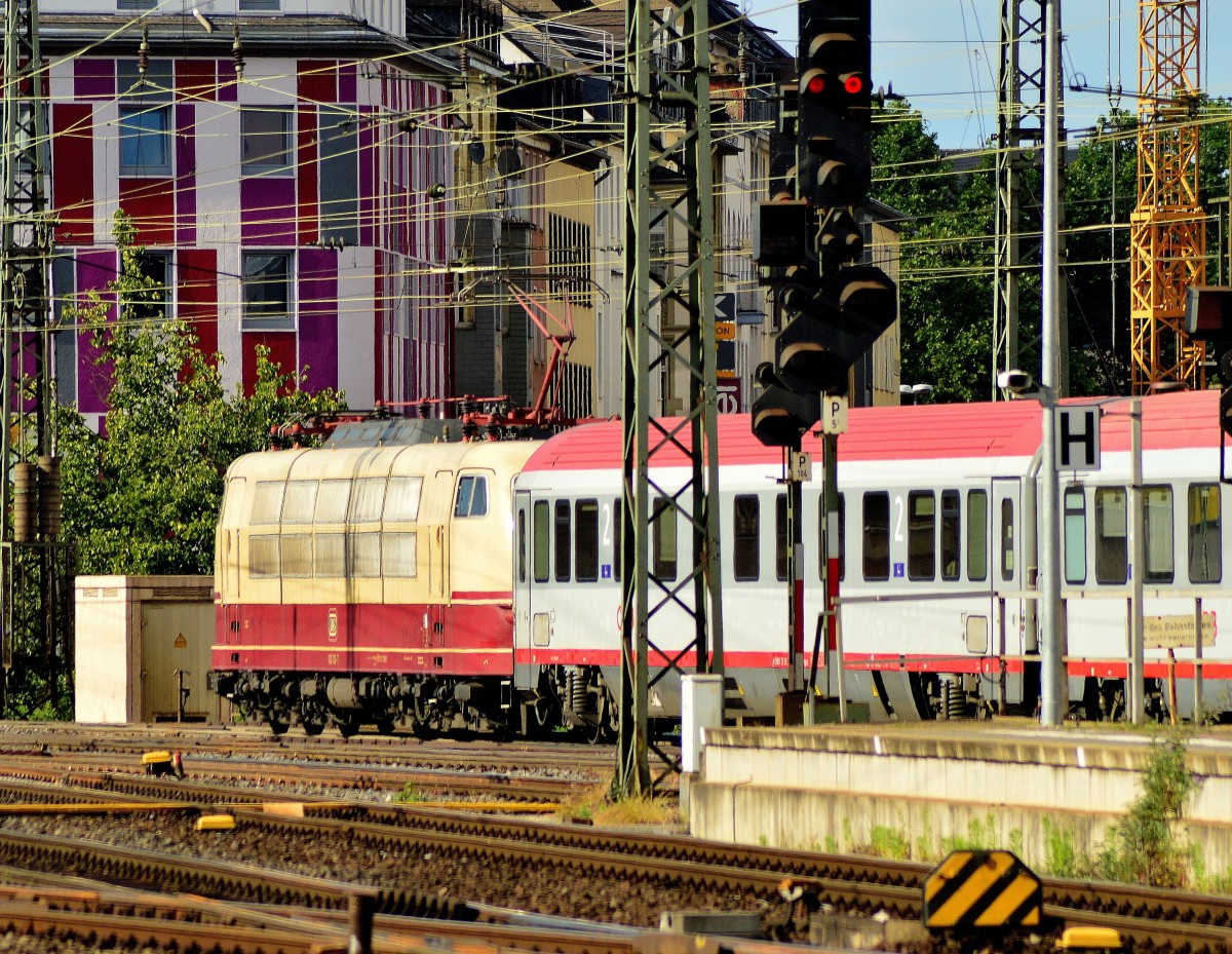 103 113-7 verlässt Koblenz Hbf mit dem IC Innsbruck - Münster am Sonntag den 15.6.2014