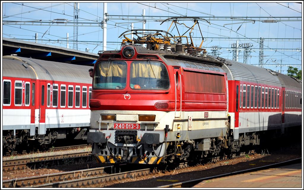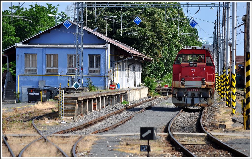 Auch im Jahr 2014 gab es wieder eine Werkstattfahrt mit der E77 10 und einem historischen Wagenpark. Anlaß der Fahrt am 18.06. waren die Inbetriebnahme des Citytunnels in Leipzig, die Bautätigkeit im Knoten Chemnitz und die Inbetriebnahme des neuen ESTW in Ostrau. Hier erreicht der (Leer-)Zug den Bahnhof Altenburg, leider an der dort noch vorhandenen Signalgruppe vorbei direkt auf Gleis 3, schade.