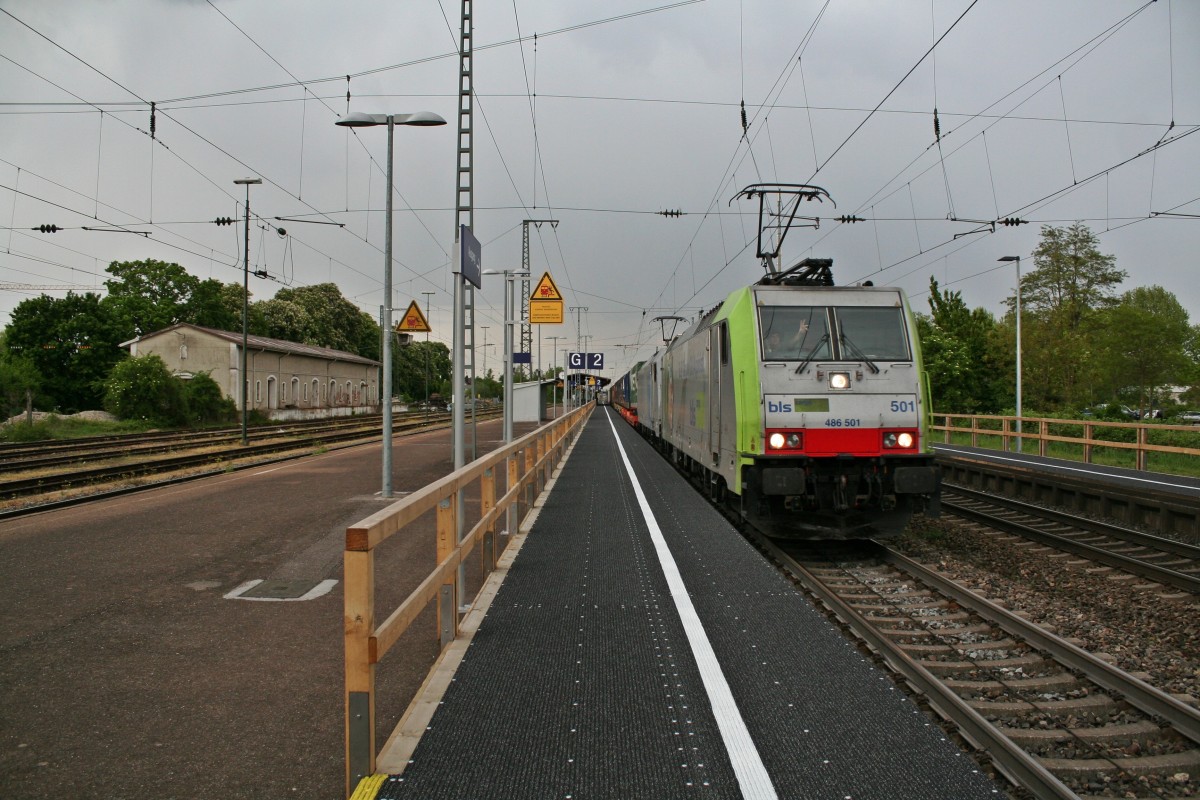 486 501 und 186 251-5 mit dem 42013 auf der Fahrt von Wanne-Eickel nach Melzo am Nachmittag des 25.04.14 im Bahnhof Müllheim (Baden). Viele Grüße an den Lokführer!