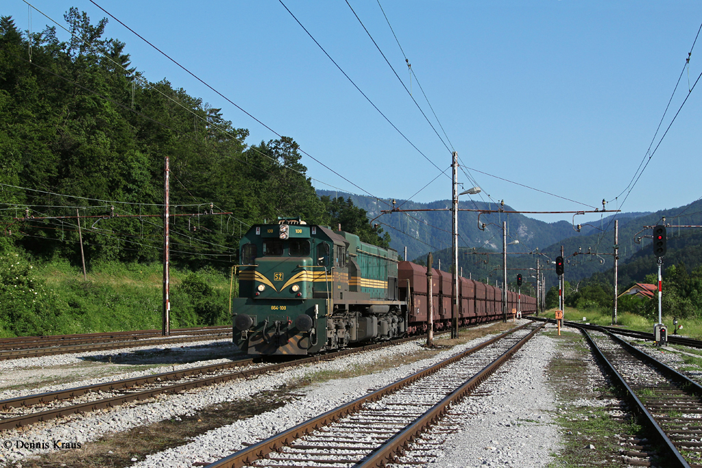 SŽ 363-031 zieht Containerzug durch Maribor-Tabor Richtung Koper Hafen. /13.6.2014