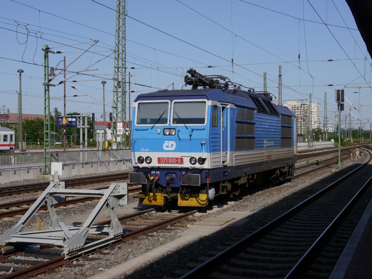 Auch Knödelpresse 371 001 "Lucka" hat jetzt die neue blaue Farbgebung; Dresden Hbf. 07.06.2014