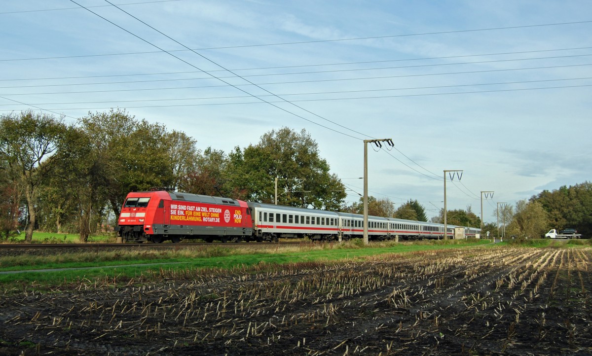 101 001-6 fuhr am 31.10.2013 mit dem IC 134 von Norddeich Mole nach Luxemburg, hier in Eisinghausen bei Leer.