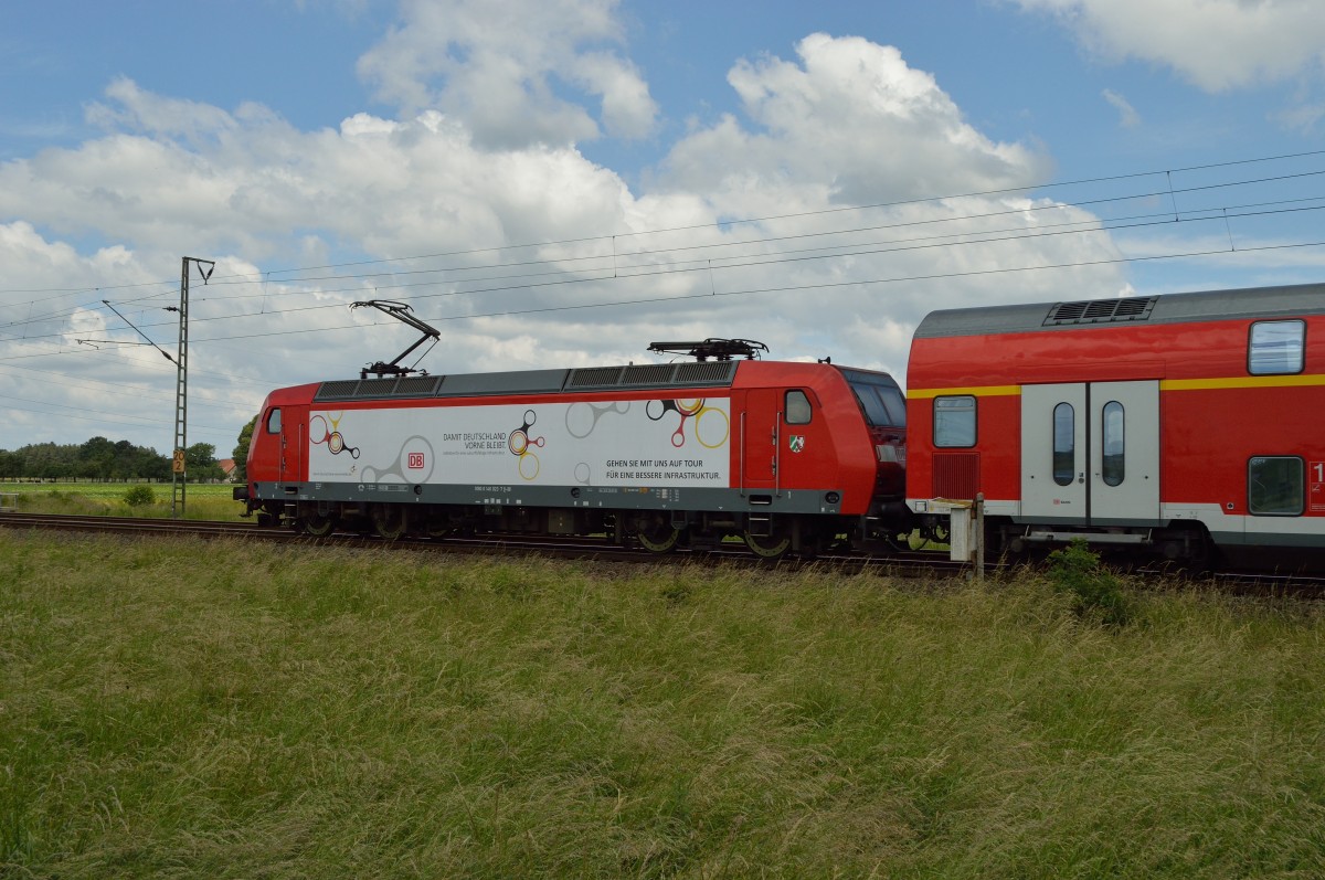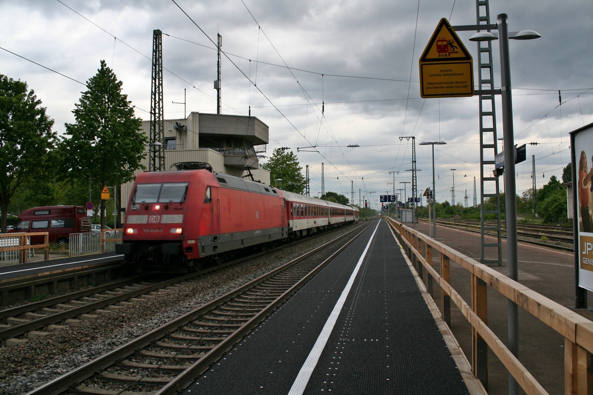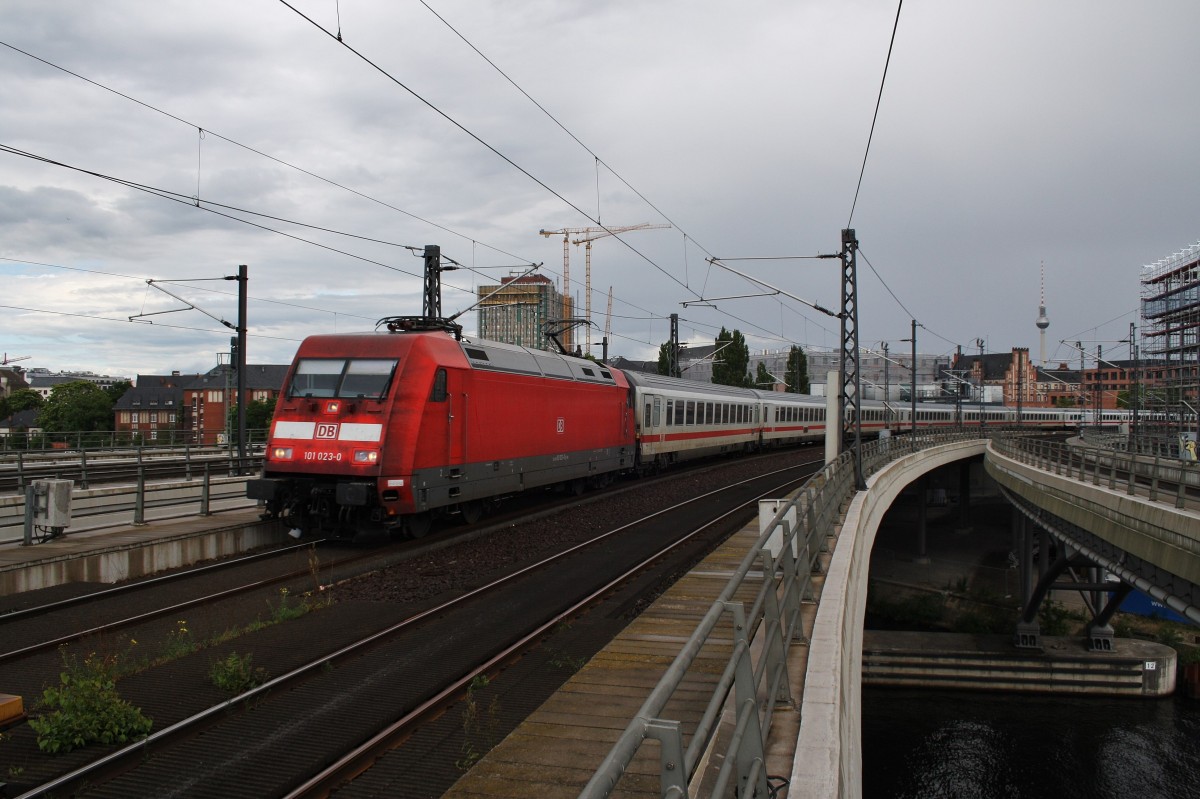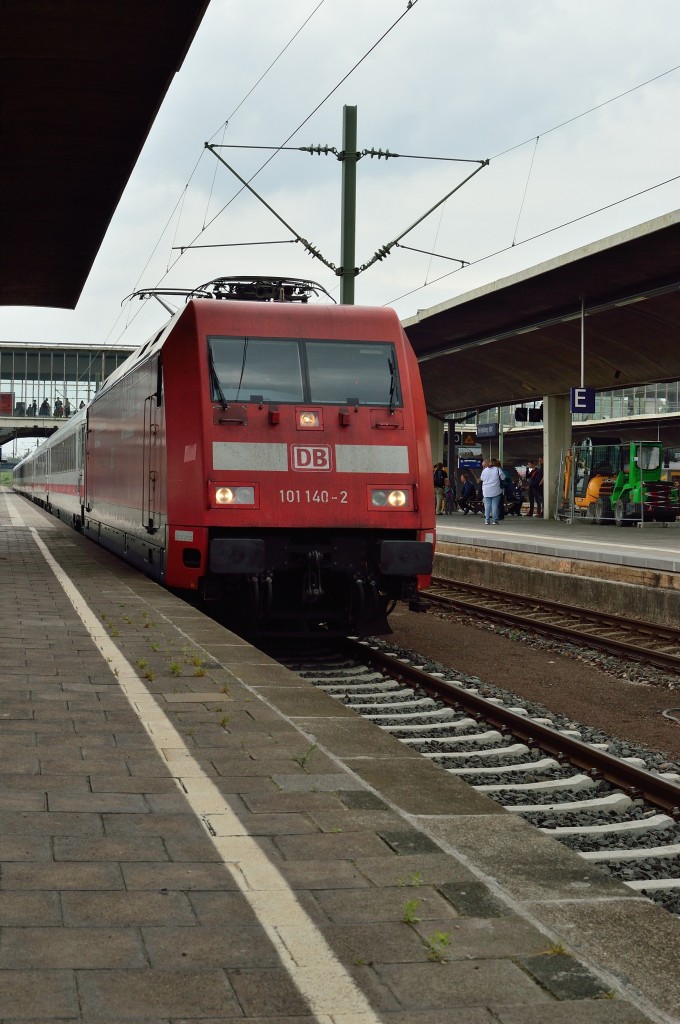 101 080-1 fuhr am 24.05.2014 mit dem IC 2004 von Konstanz nach Emden HBF, hier bei Neermoor.