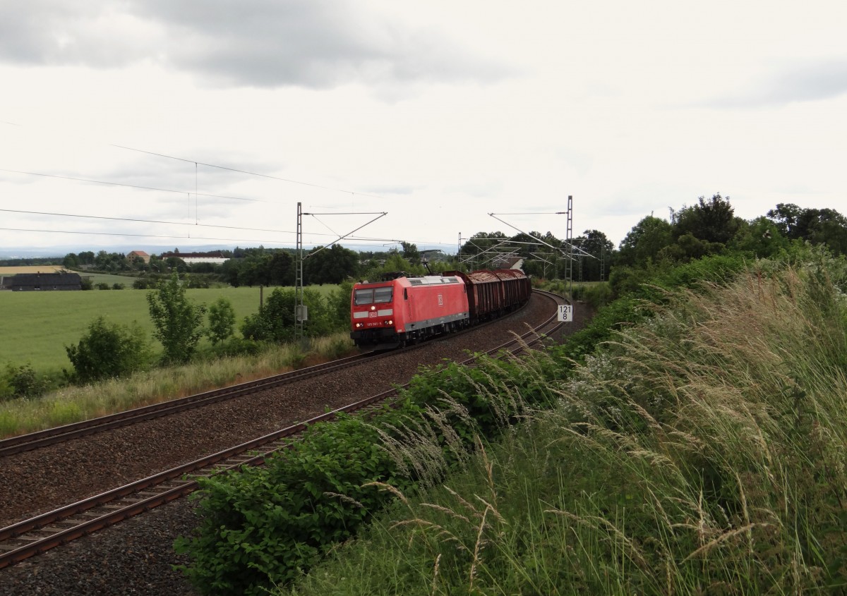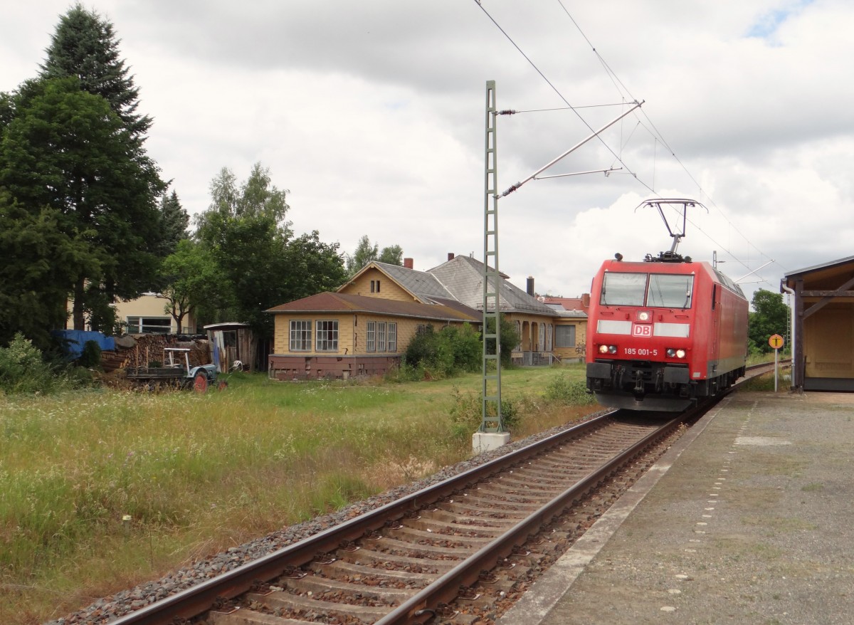 185 001 ist am 20.06.14 mit einem Frankenwaldumleiter in Syrau/V. zusehen.