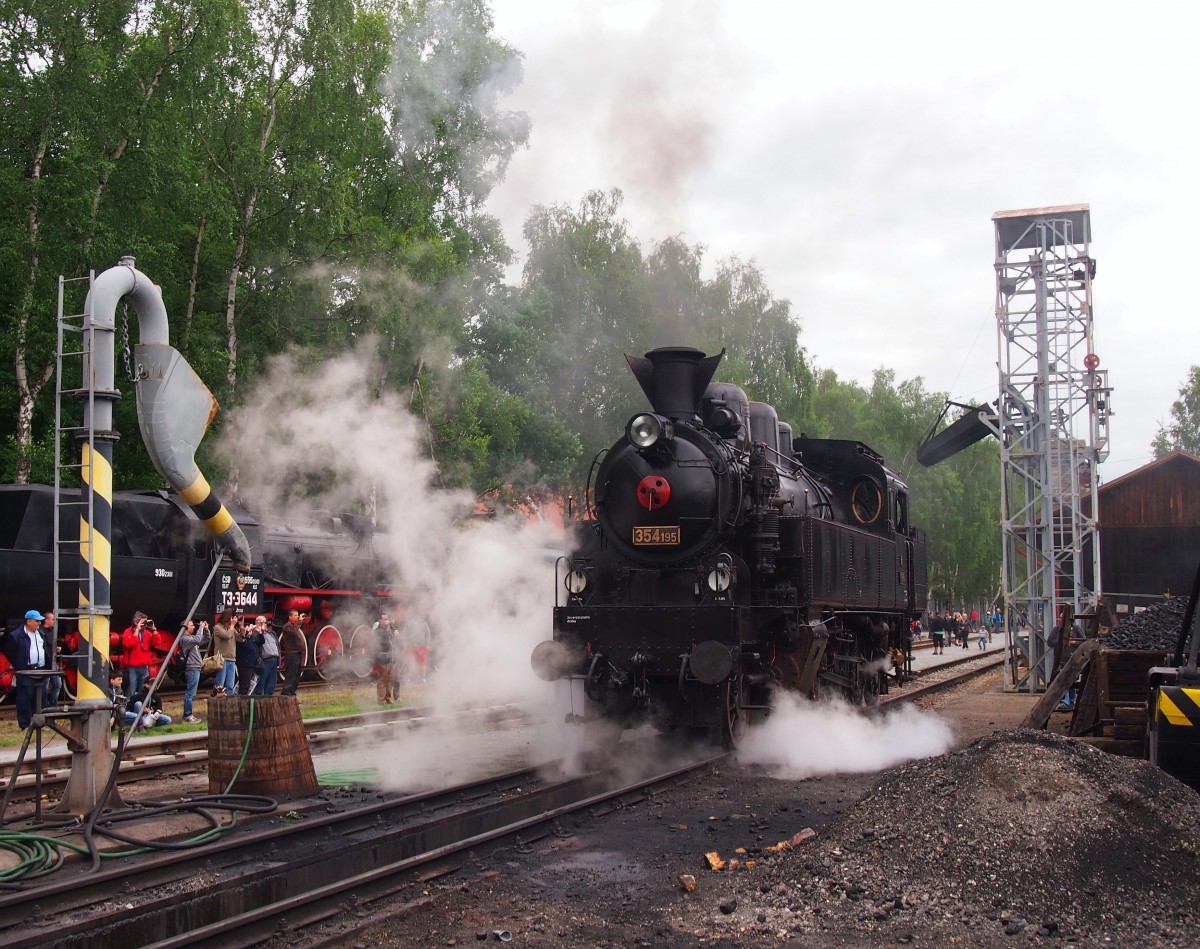 498 104 mit Sonderzug aus Prag nach Dampfloktreffens im Eisenbahnmuseum Lužná u Rakovníkain Hbf. Kladno am 21.6.2014. (Baujahre 1954, Skoda Pilsen, Tschechische schnellsten Dampflokomotive - 162km/St,1600kW.)