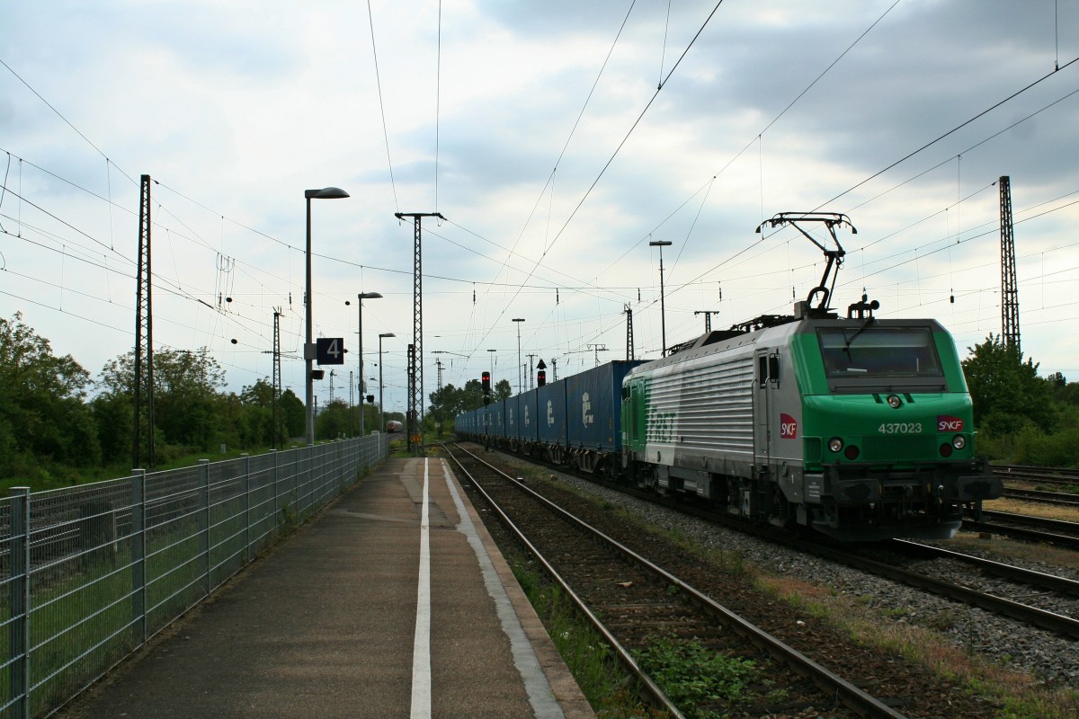 185 145-0 DB kommt aus Richtung Köln,Aachen-Hbf mit einem langen Contanierzug aus Gallarate(I) nach Zeebrugge(B) und fährt in Aachen-West ein. Aufgenommen vom Bahnsteig in Aachen-West bei Sommerwetter am 6.6.2014.