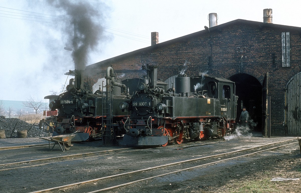 T435 0554, eine ehemalige Werklok des VEB Zementwerk Karsdorf (später Karsdorfer Eisenbahn), ist nun für die Railsystems RP GmbH im Einsatz. Am 31.05.1014 sonnt sich die tschechische Maschine vor dem Rundlokschuppen in Staßfurt.
