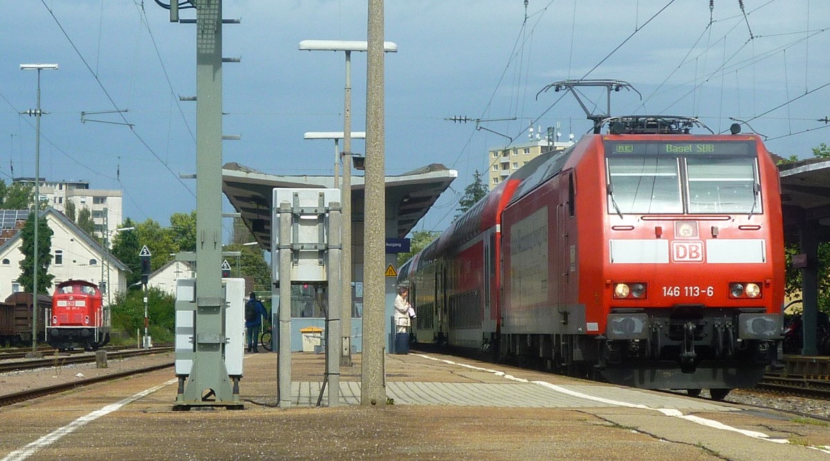 Am 8.9.2011 stand 146 113 mit einem RE nach Basel SBB im Bahnhof Lahr.